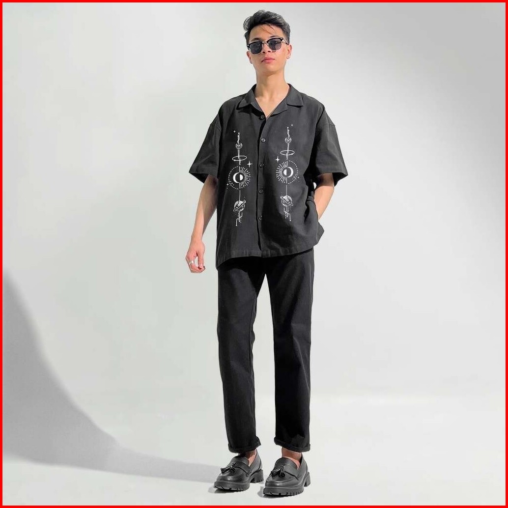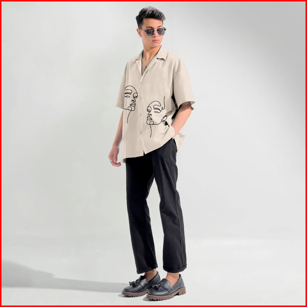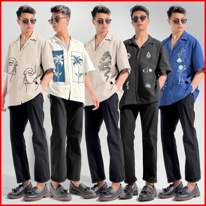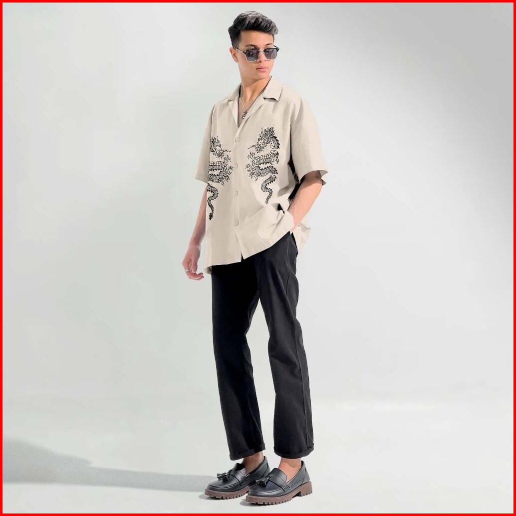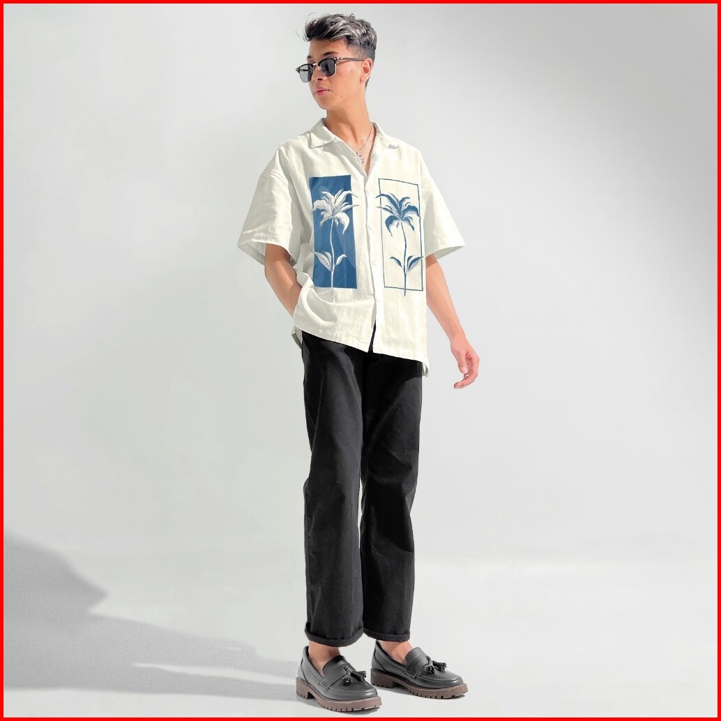Volume 2 Oversize Printed Shirt Kemeja Print Linen Pria Bowling Collar Shirt