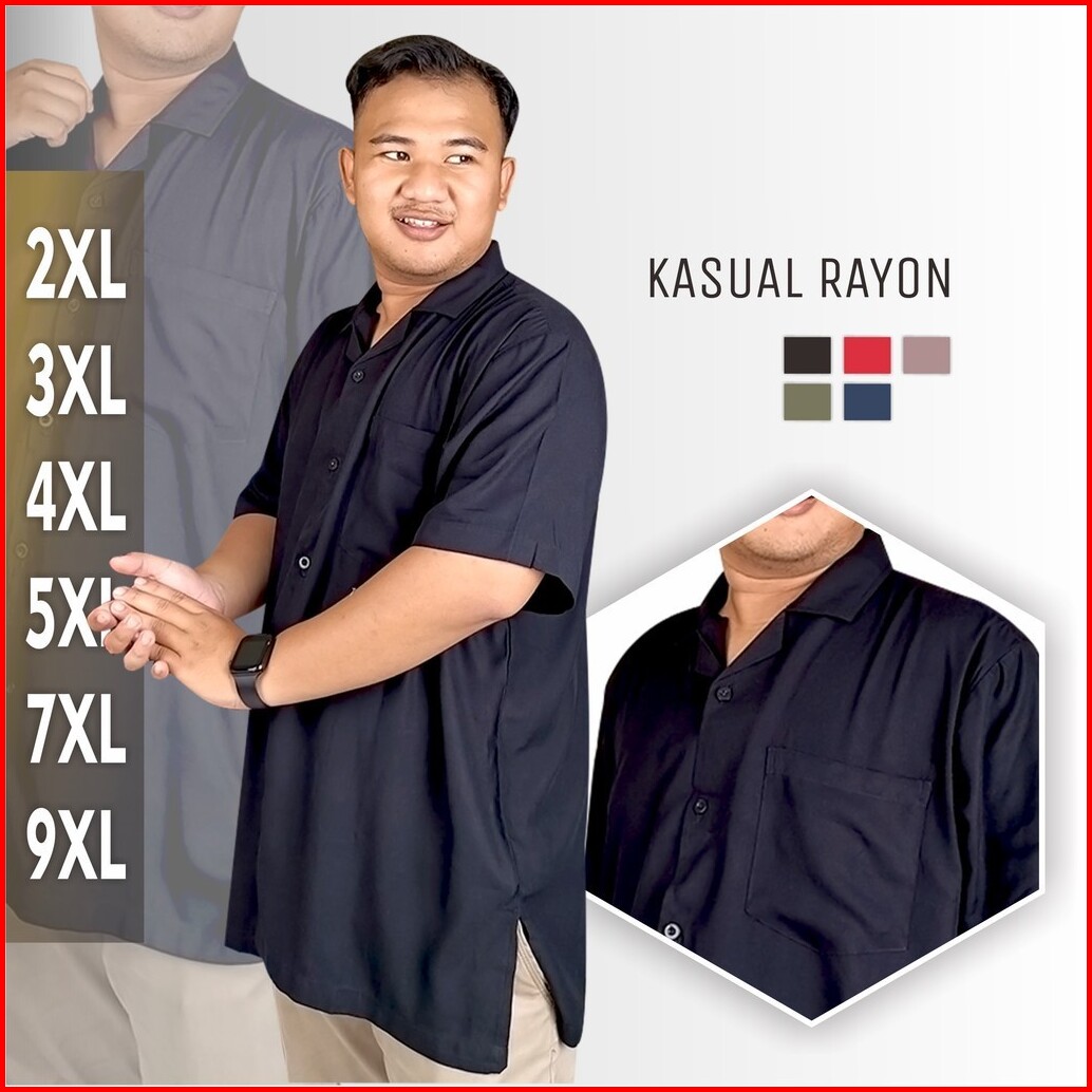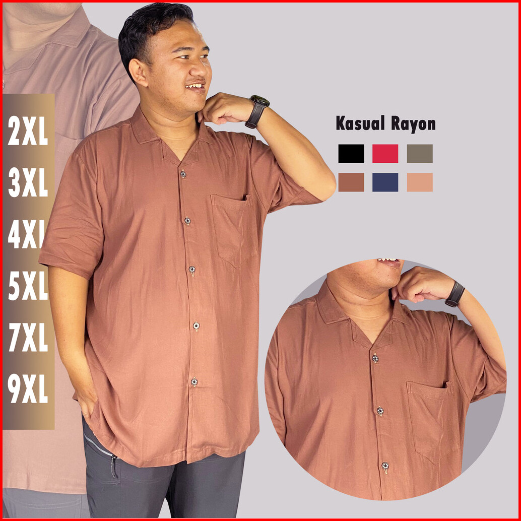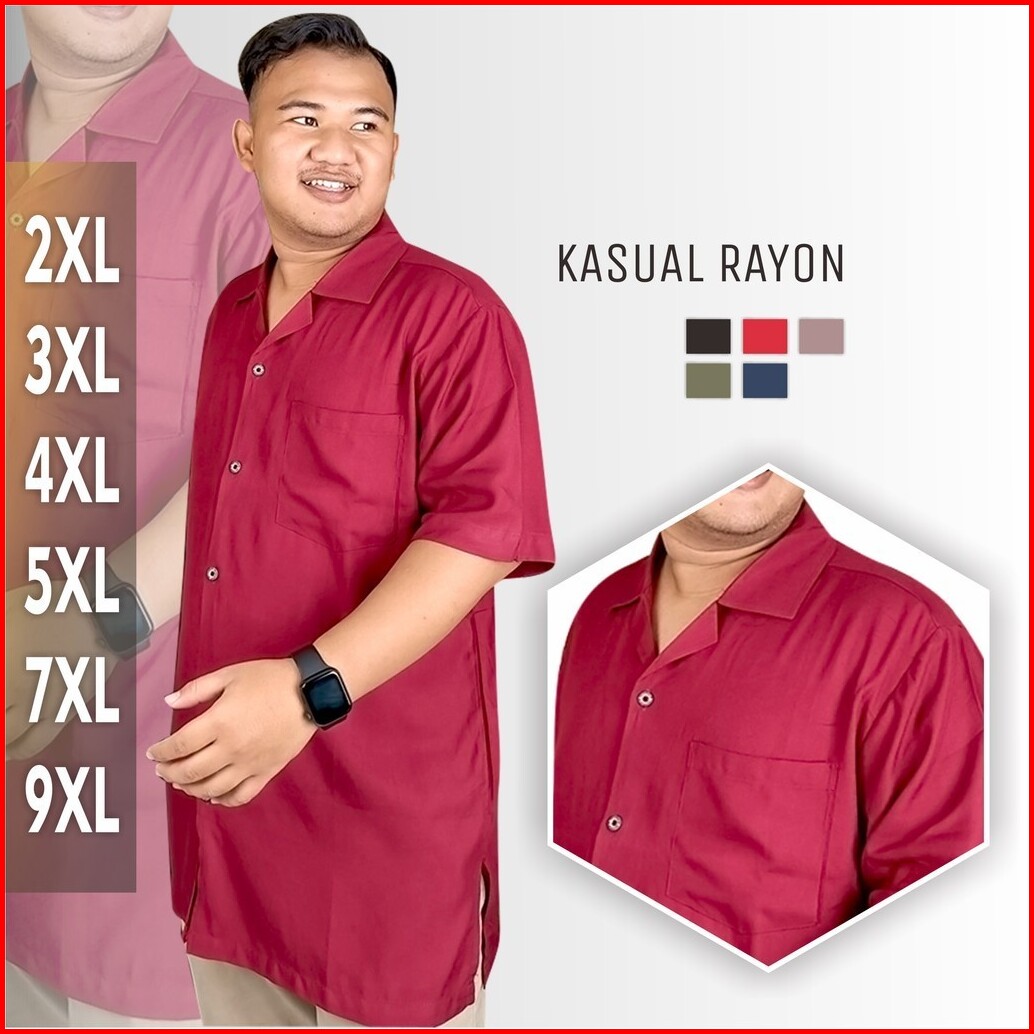Kemeja Rayon Jumbo Hawai Polos Pria Dewasa Lengan Pendek Bigsize Katun Rayon 2xl 3xl 4xl 5xl 7xl 9xl