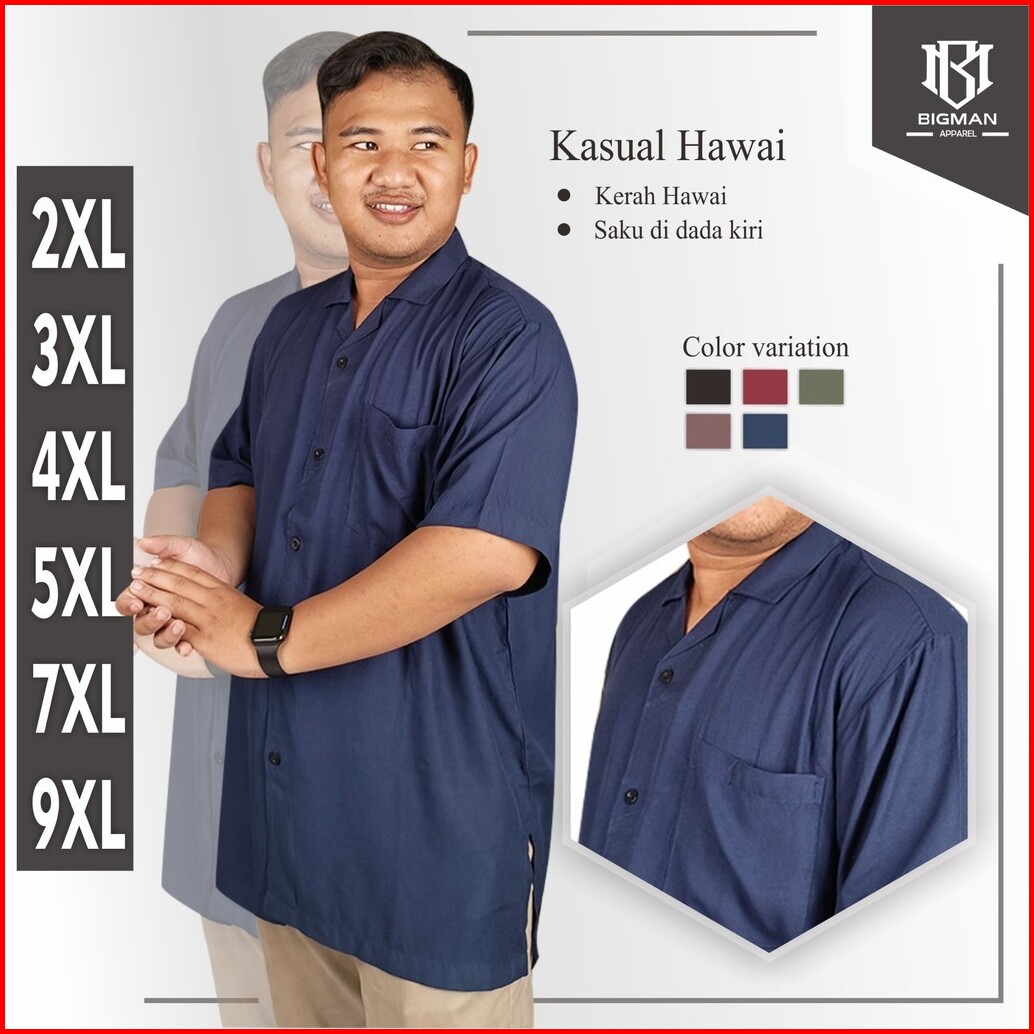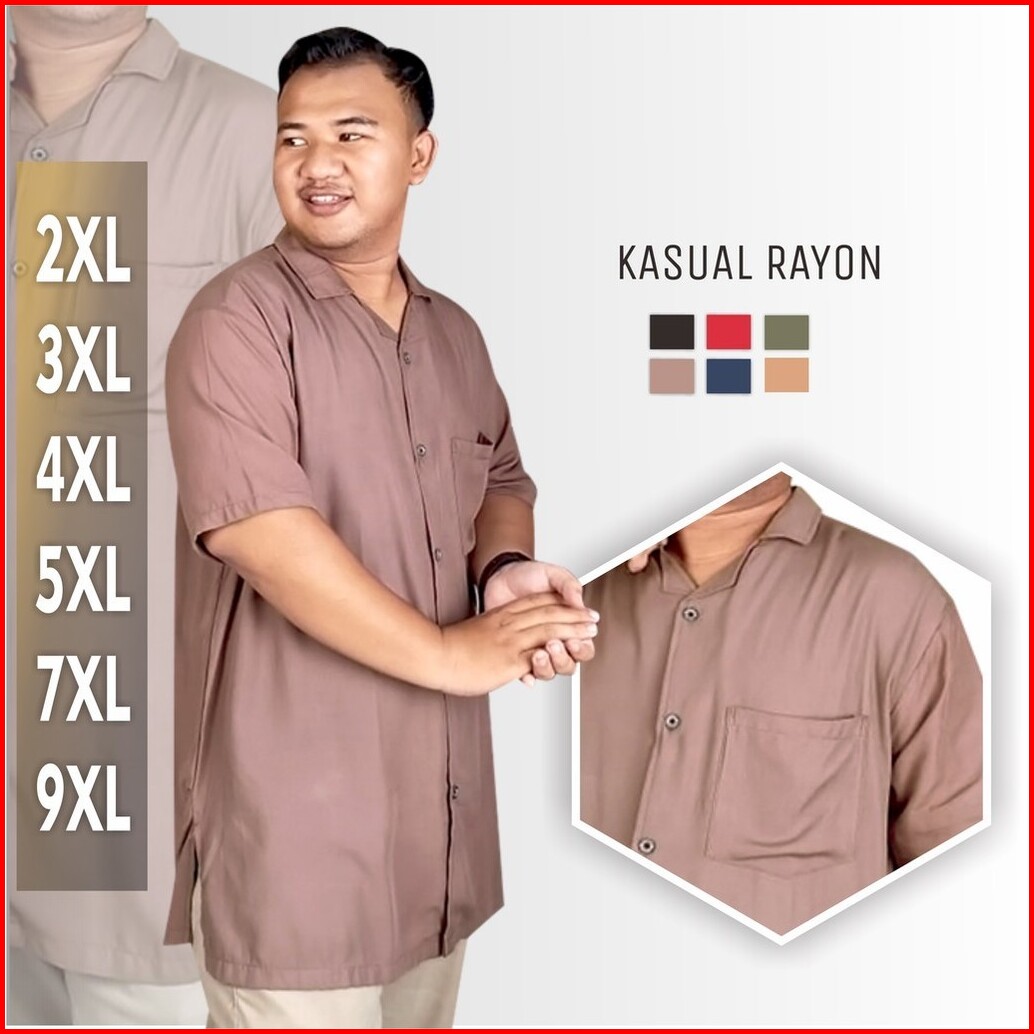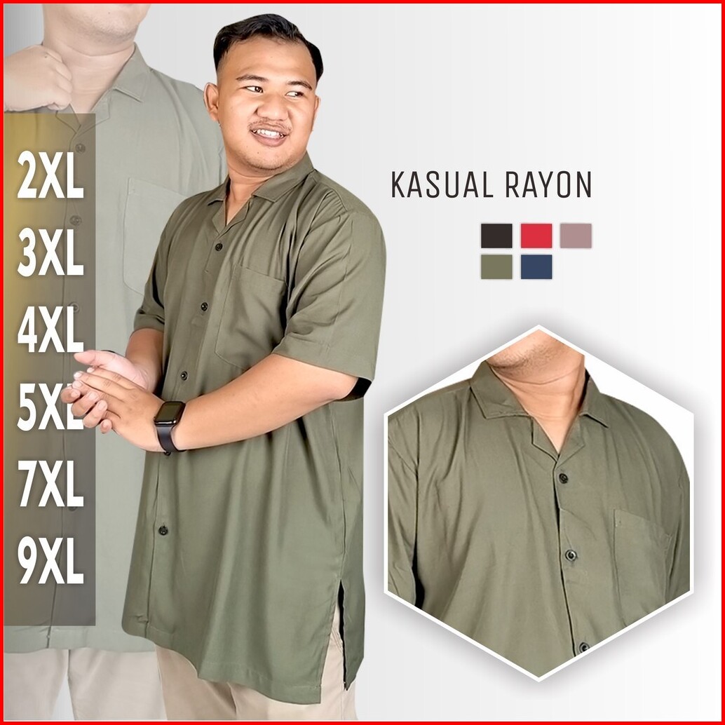 Kemeja Rayon Jumbo Hawai Polos Pria Dewasa Lengan Pendek Bigsize Katun Rayon 2xl 3xl 4xl 5xl 7xl 9xl