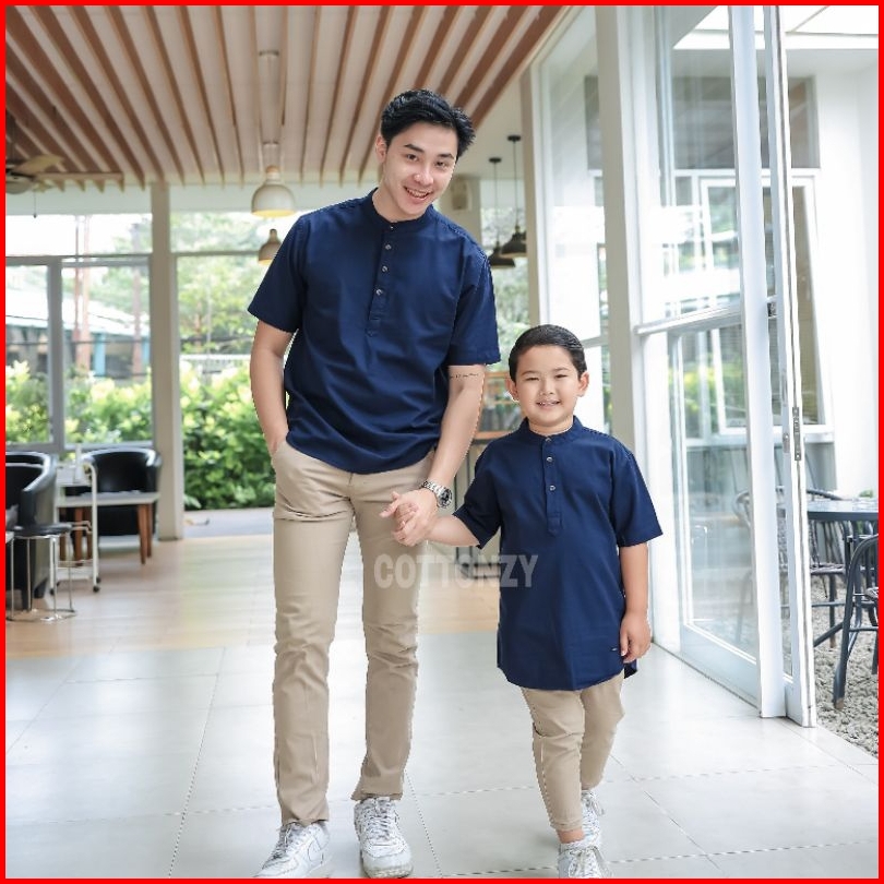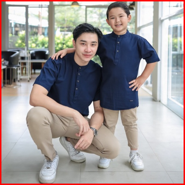 Kemeja Koko Couple Ayah Dan Anak Premium Warna Navy Usia Anak Dewasa Big Size