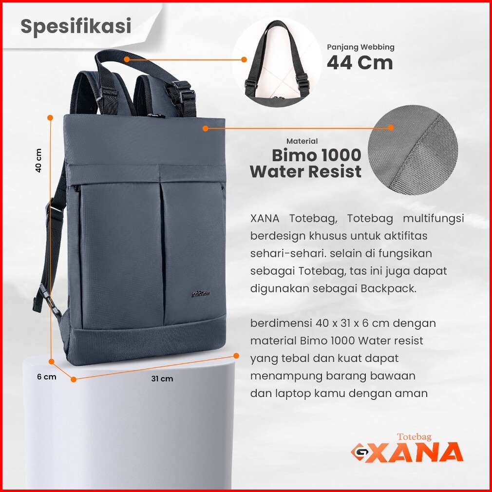 Xana - Totte Bag Laptop Pria Tas Jinjing Waterproof Tas Ransel Laptop Anti Air Tote Bag Xana Tas Multifungsi Pria Wanita