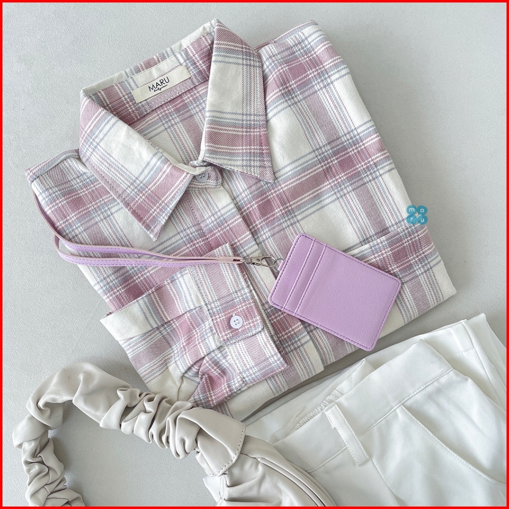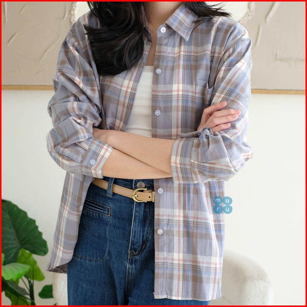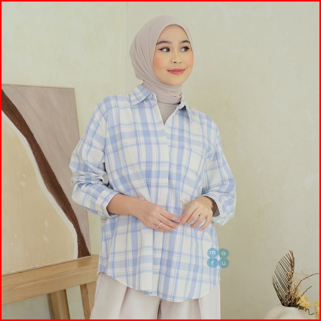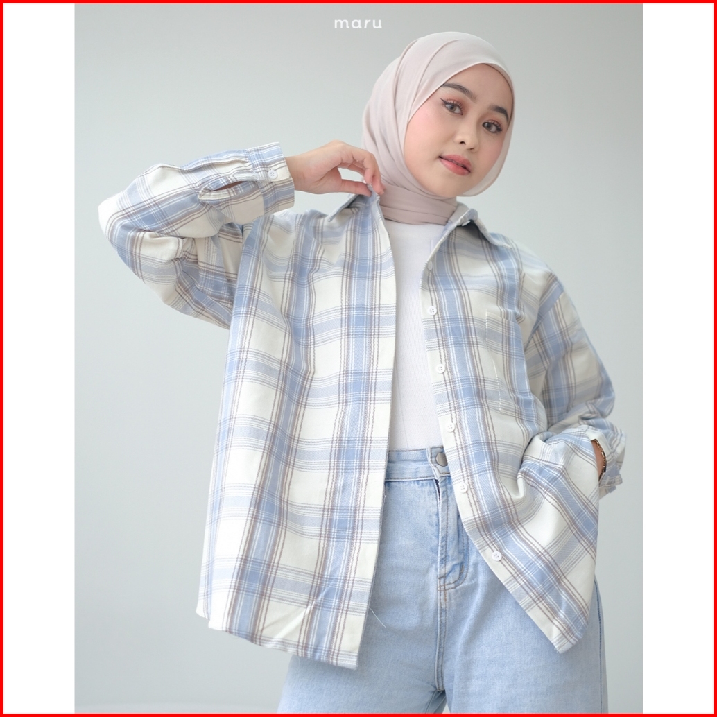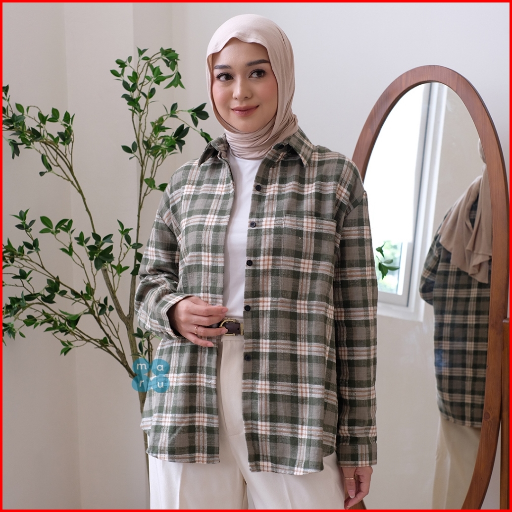 Samsan Flannel Shirt Maru Dailywear Kemeja Flanel Wanita Kotak Kotak Lengan Panjang Hijab Atasan