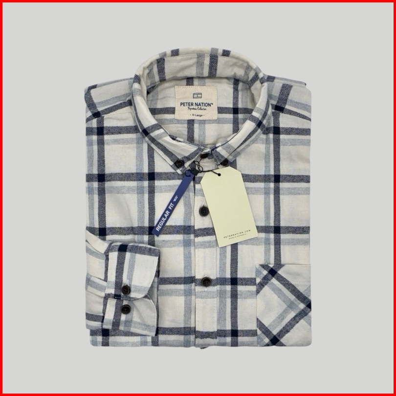 Peternation Kemeja Flanel Pria Wool Basic Panjang Broken White Regular Fit