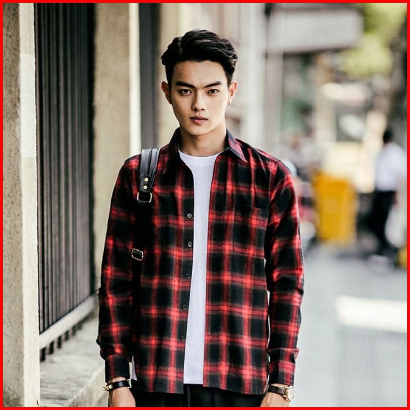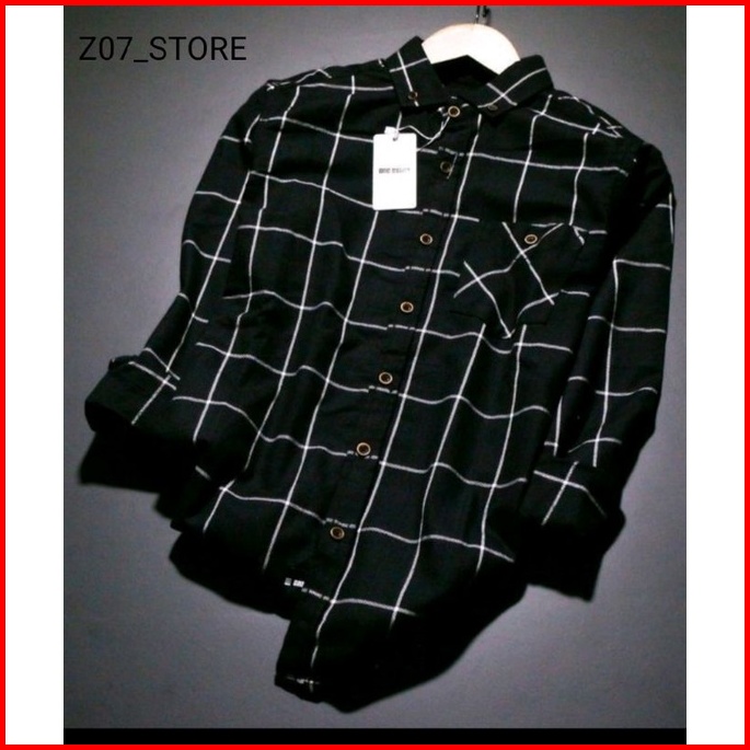 Kemeja Flanel Lengan Panjang Pria Wanita Unisek Motif Kotak