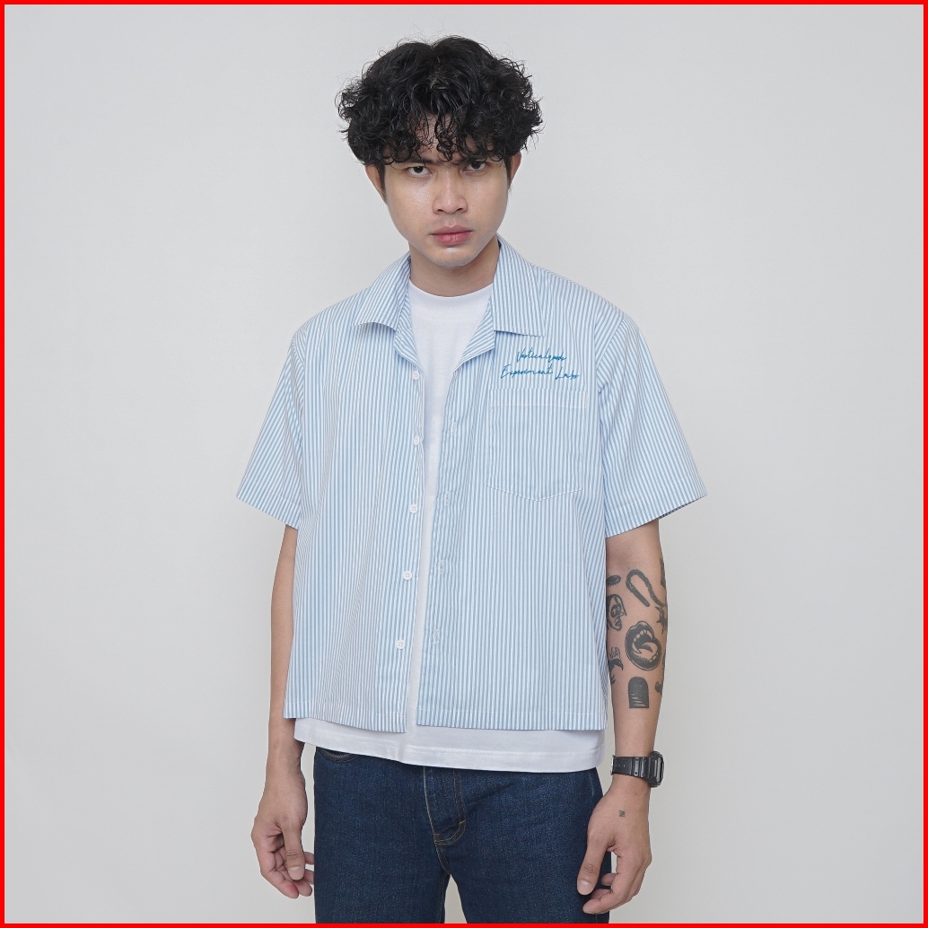 Verticalgoods Kemeja Pendek Stripe Boxy Fit Crop
