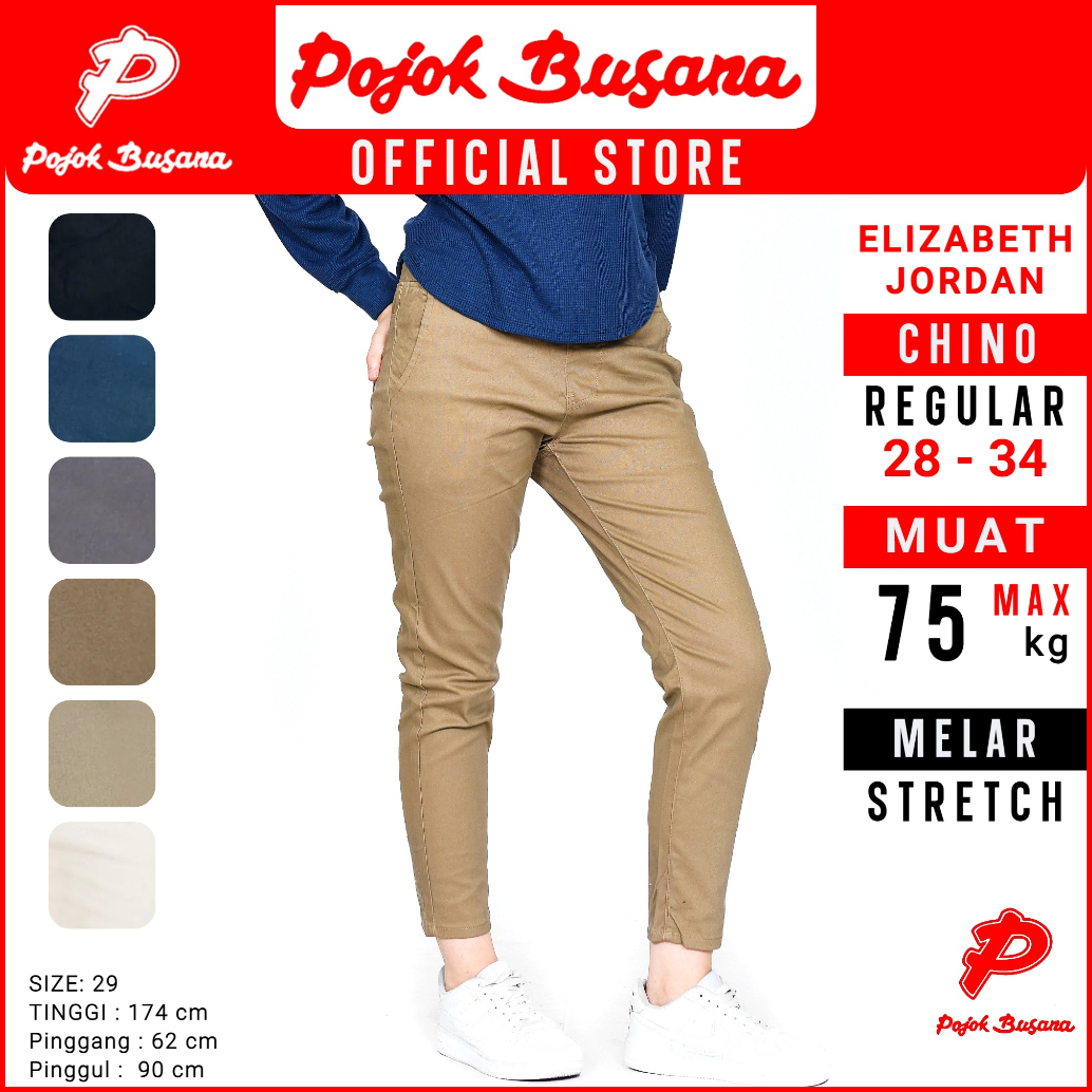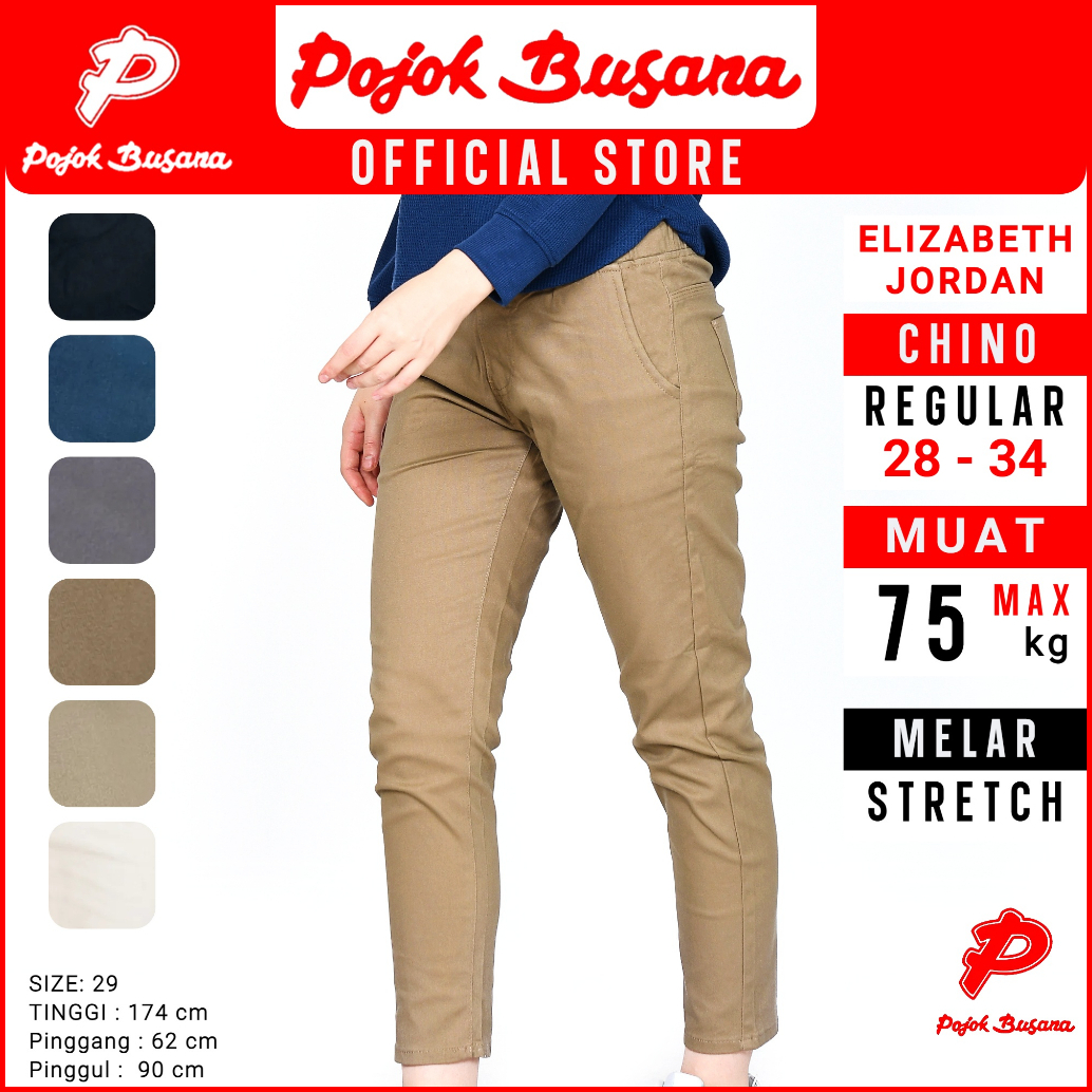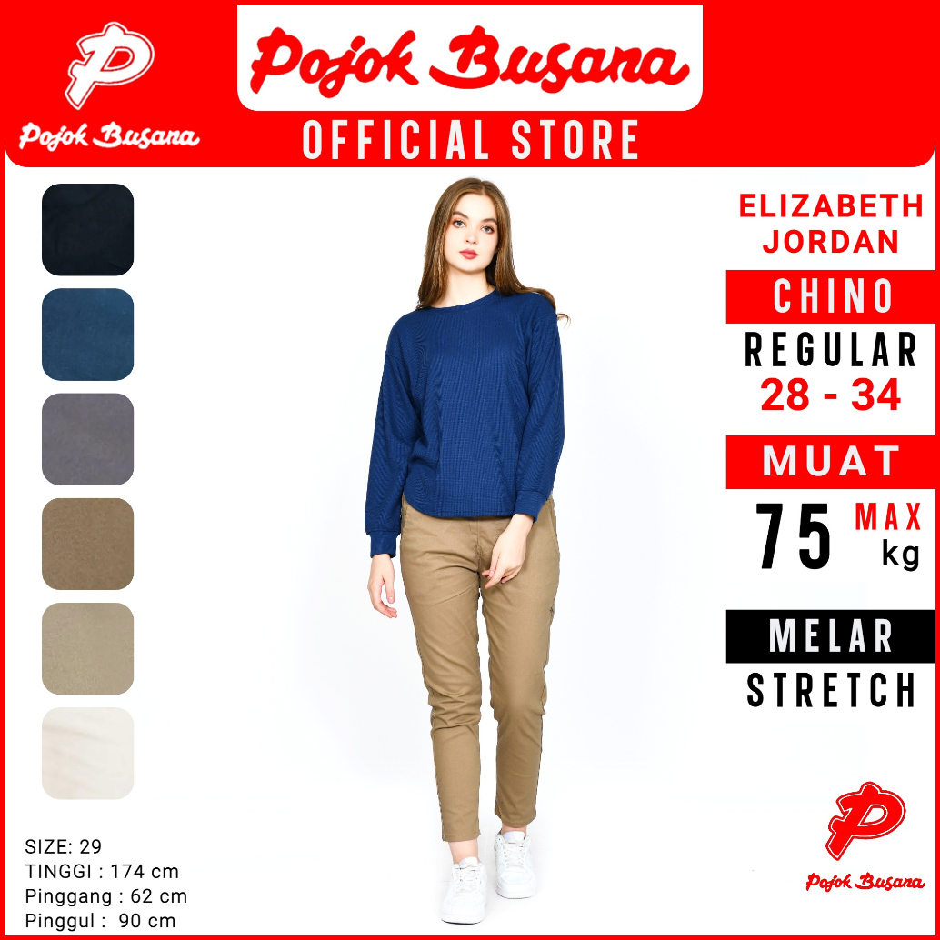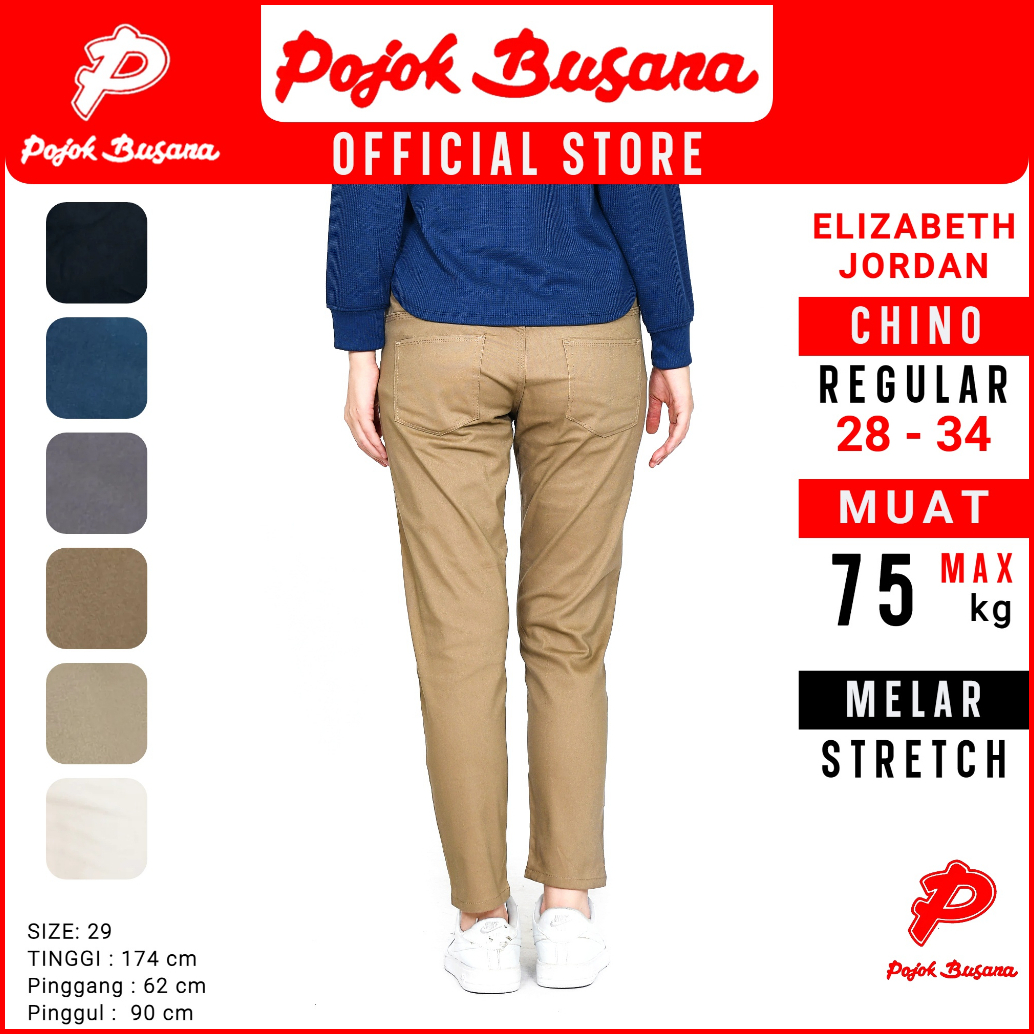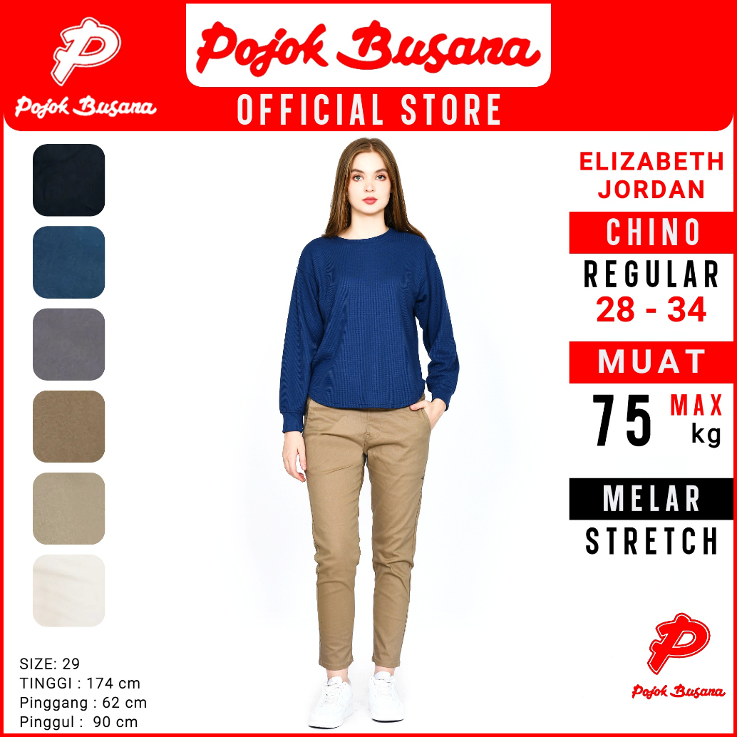 Pojok Busana Smart Chino Pants Cotton Premium Stretch Wanita - Celana Panjang Kerja Kantor Kasual