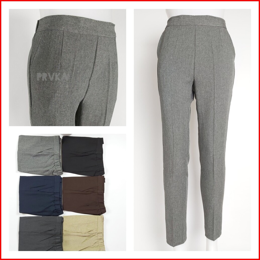 Celana Bahan Kerja Wanita Pingang Karet Belakang . Ukuran S - Xl Premium
