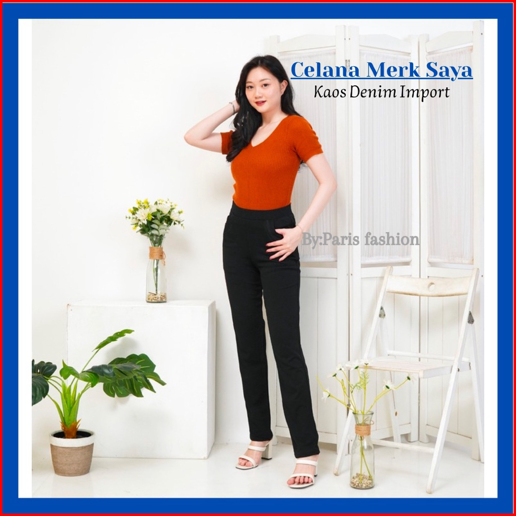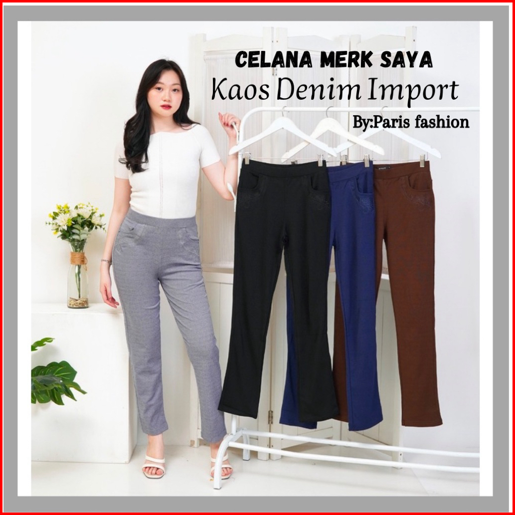 Celana Panjang Wanita Jumbo Import Celana Denim Strech Tebal Nyaman M-6l Celana Merek Saya