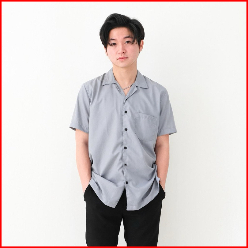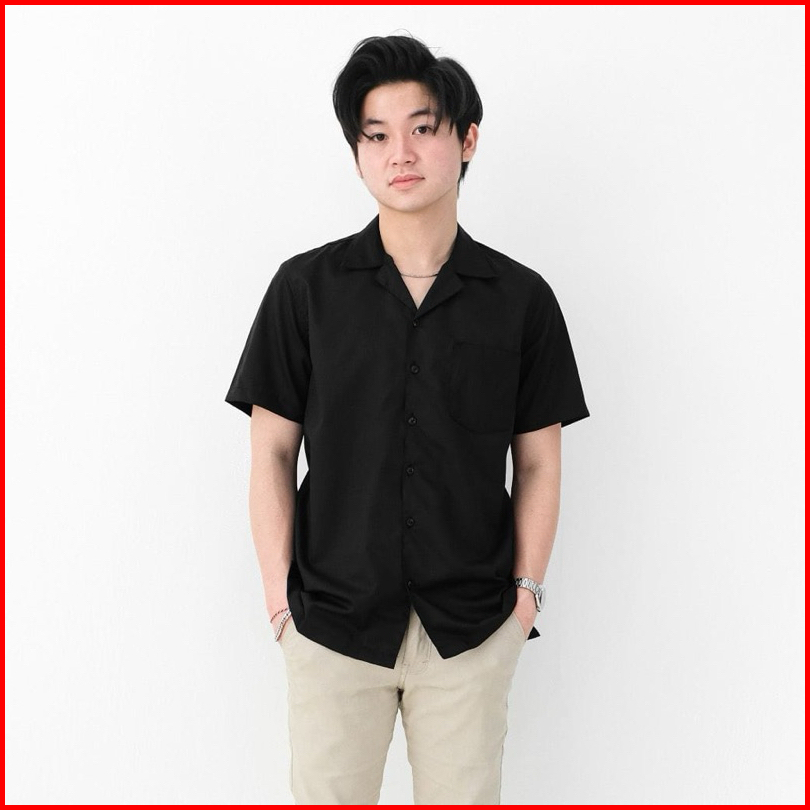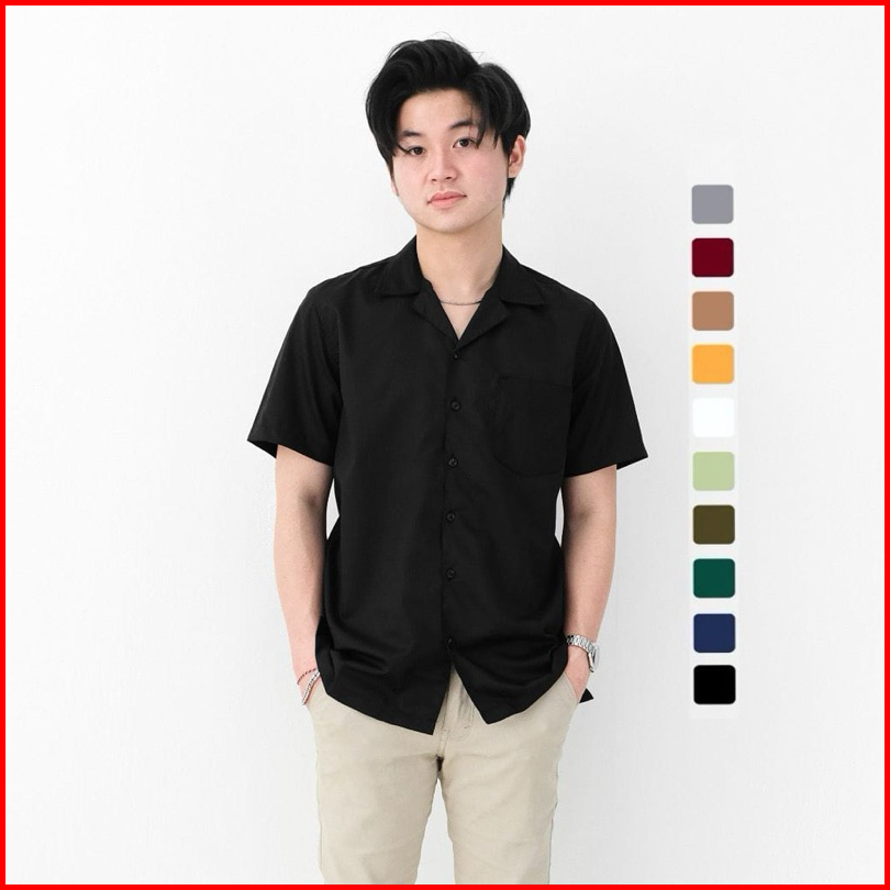 Smilesky Kemeja V Neck Pria Lengan Pendek Polos - Cotton Toyobo Adem Halus Ukuran M L Xl