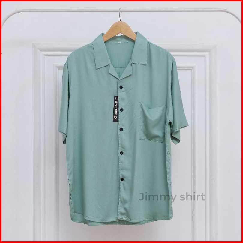 Jimmy Shirt Kemeja Hawai Polos Pria Wanita Bahan Adem Greensage