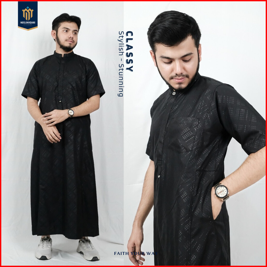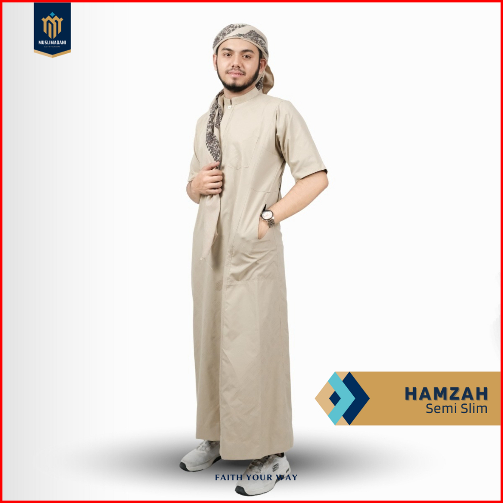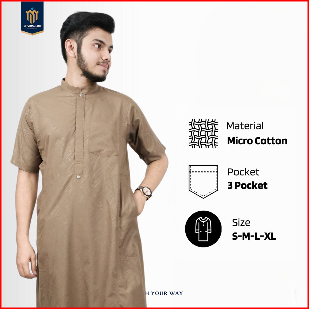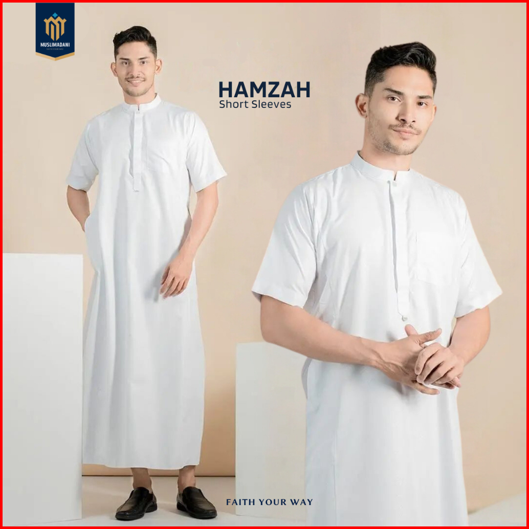 Muslimadani Jubah Dewasa Hamzah Gamis Pria Lengan Pendek Pakaian Muslim Pria