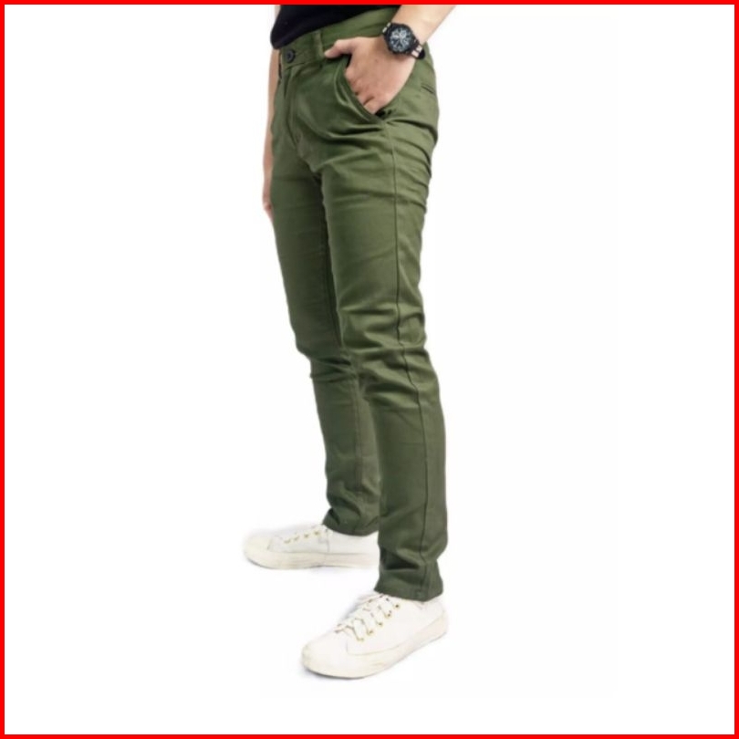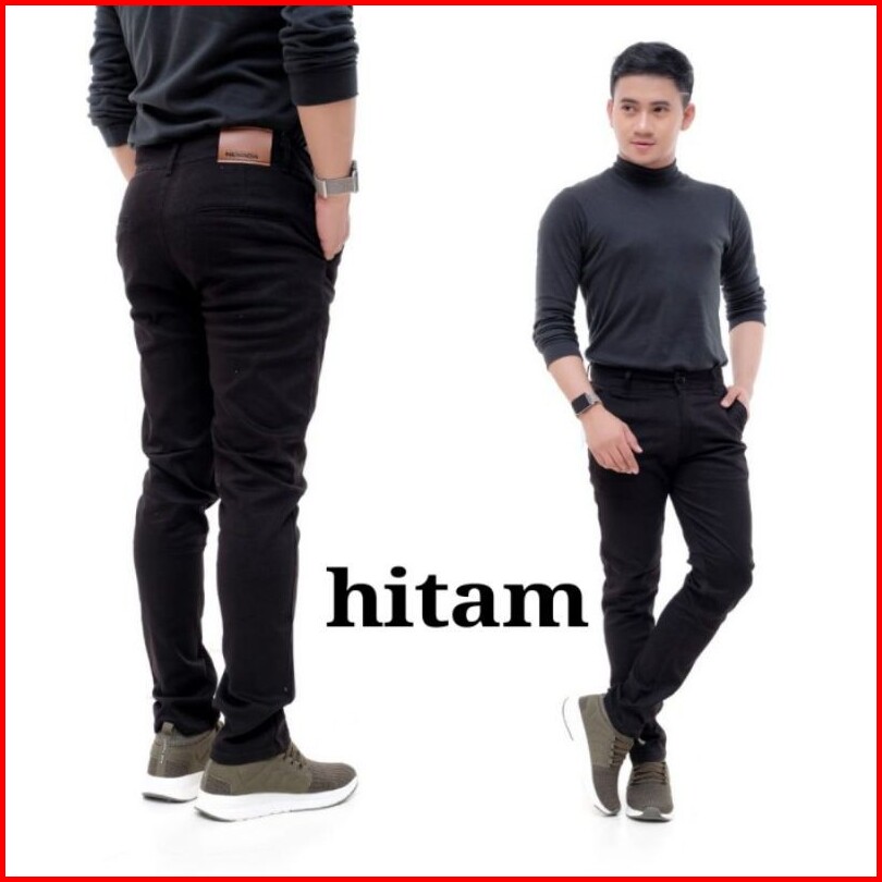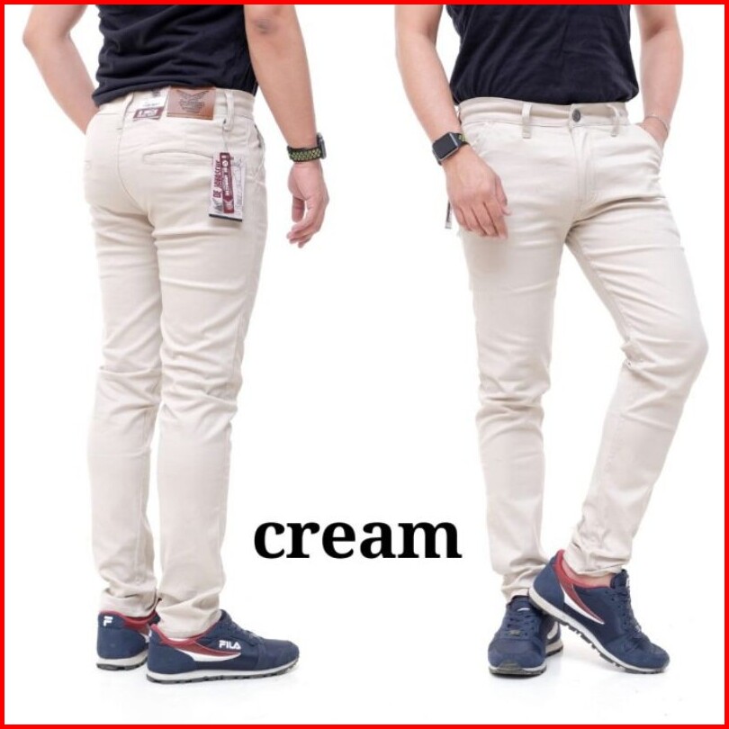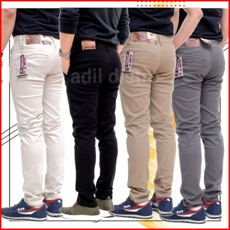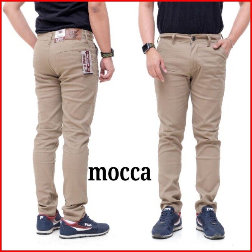 Celana Chinos Panjang Pria Slim Fit Cowok Dewasa Bahan Katun Melar Hitam Abu Cream Mocca Ukuran Uk 28 29 30 31 32 33 34