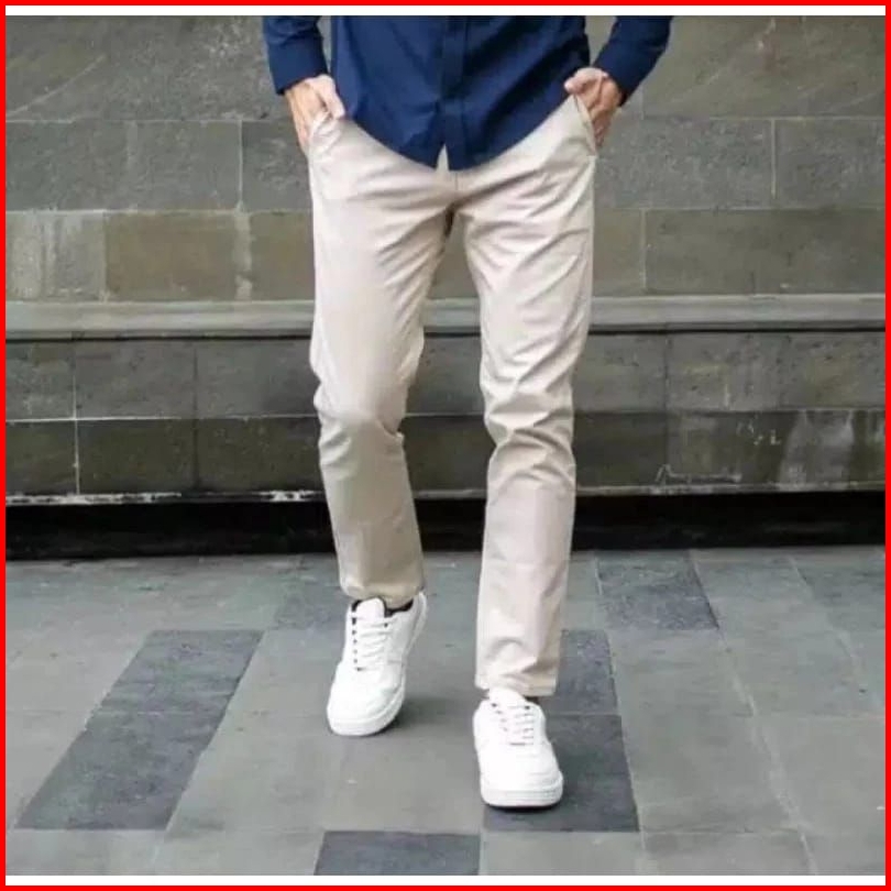 Clana Chinos Panjang Pria Slimfit Kerjaharian Santai Liburan Casual Formal Hitam Abu Cream Mocca Size 28-44