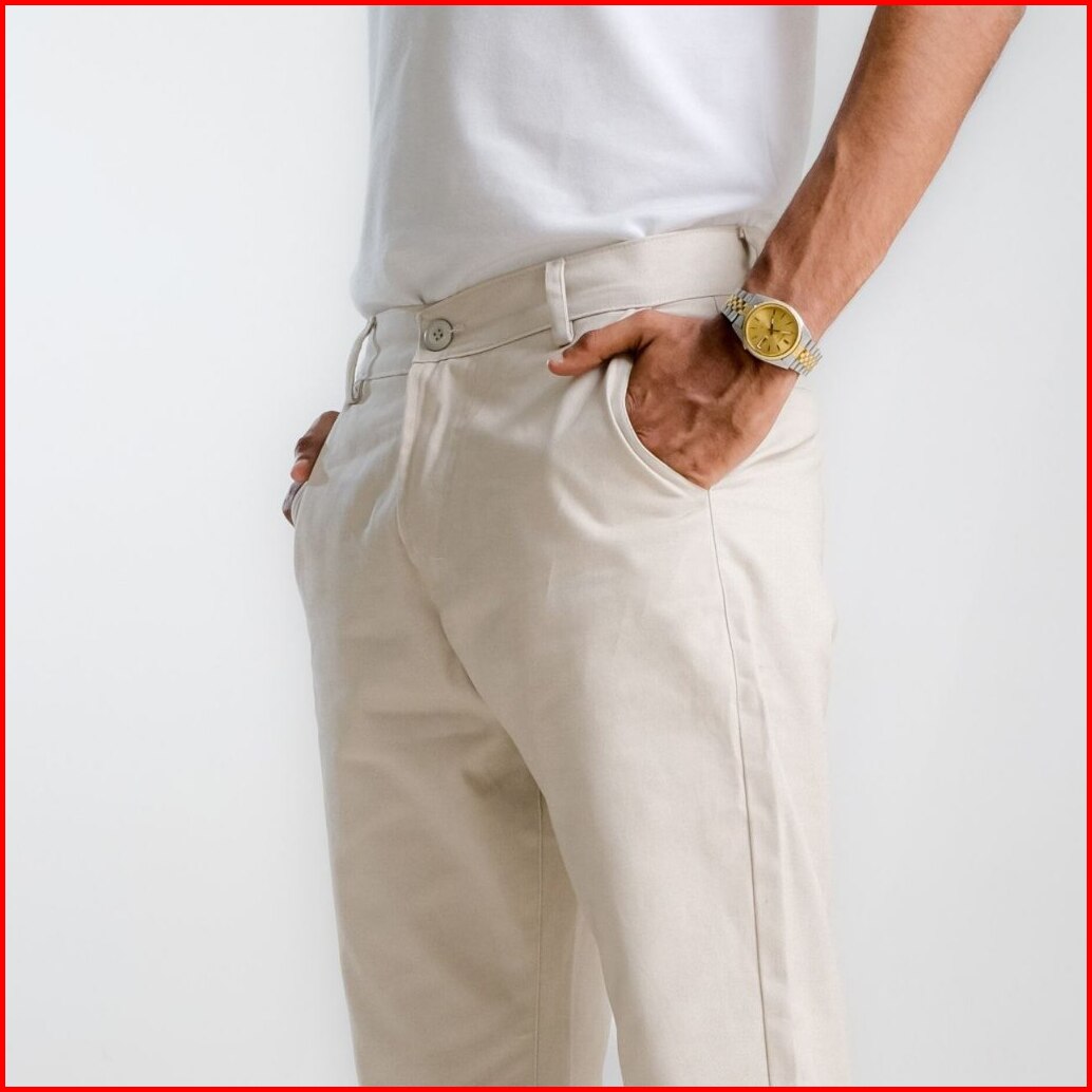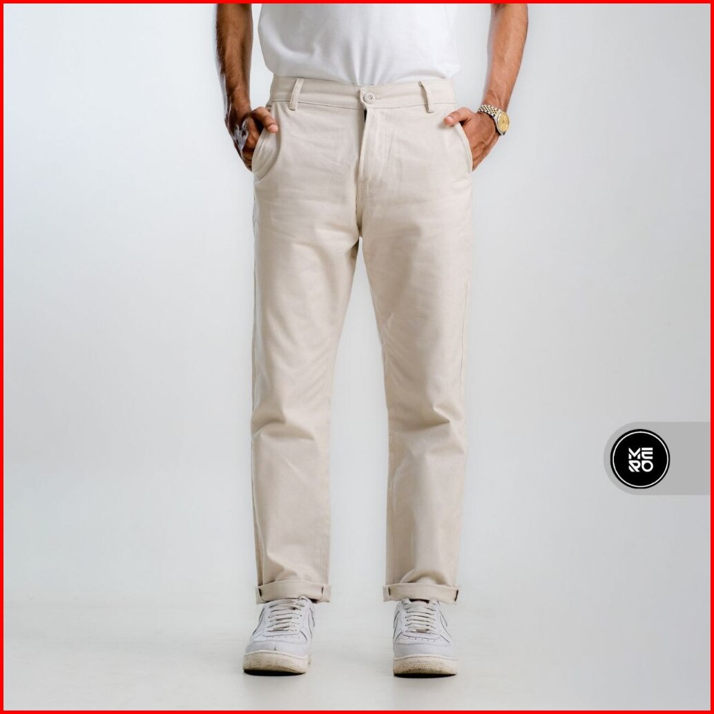 Almeroo - Celana Panjang Pria Chino Pants Katun Cream