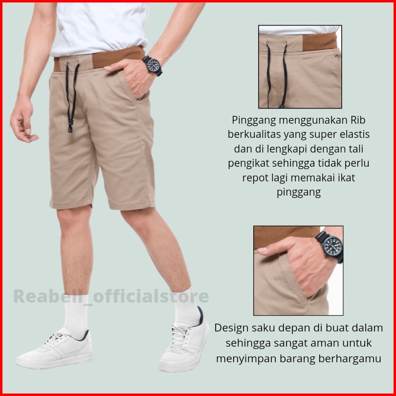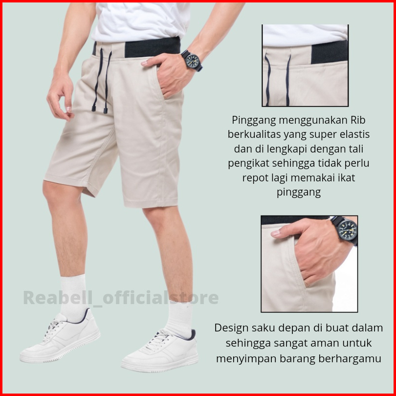 Celana Cino Pendek Pria Pinggang Karet Bahan Katun Premium Distro Original