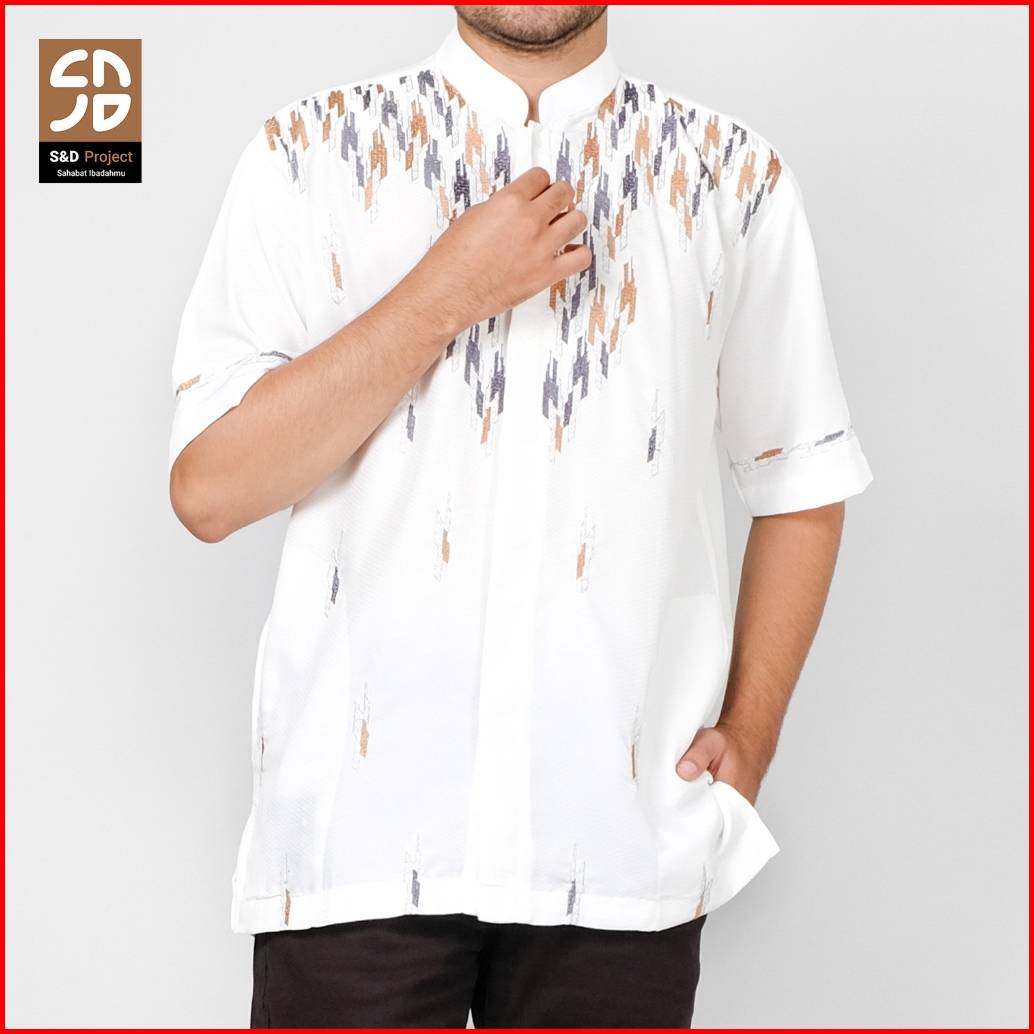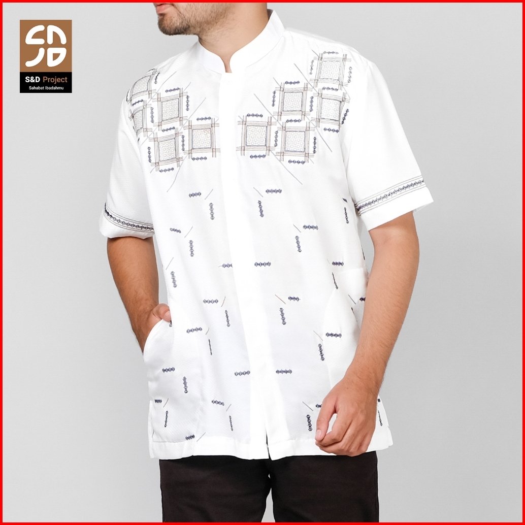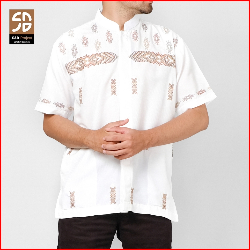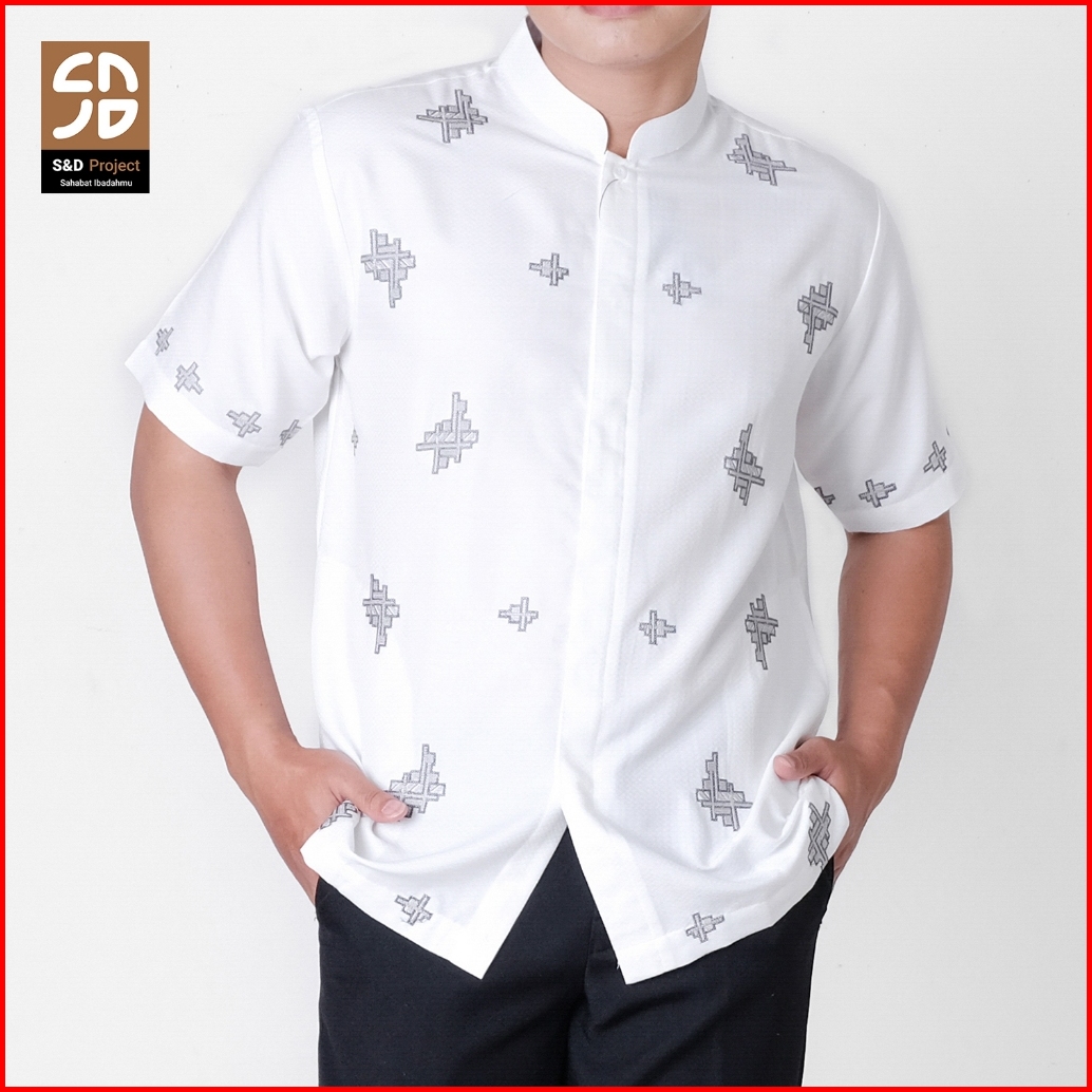 S D Project Baju Kemeja Koko Bahan Polikatun Bordir Jumbo Lengan Pendek Ukuran S M L Xl Xxl 3xl 4xl - Putih Tulang
