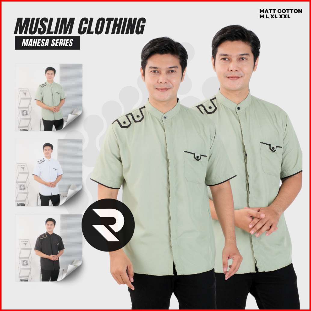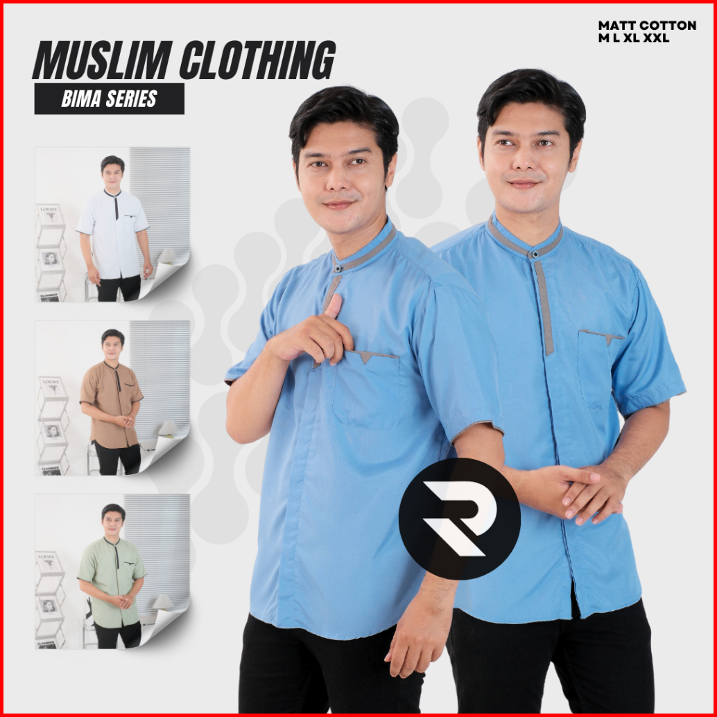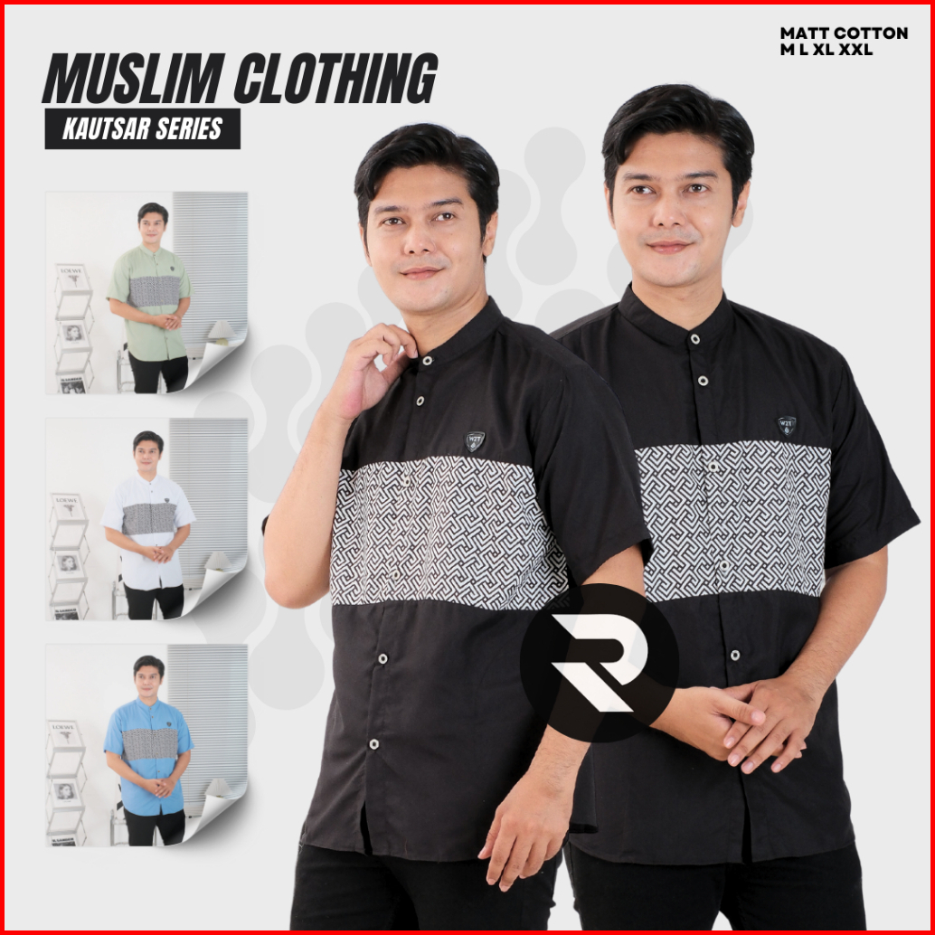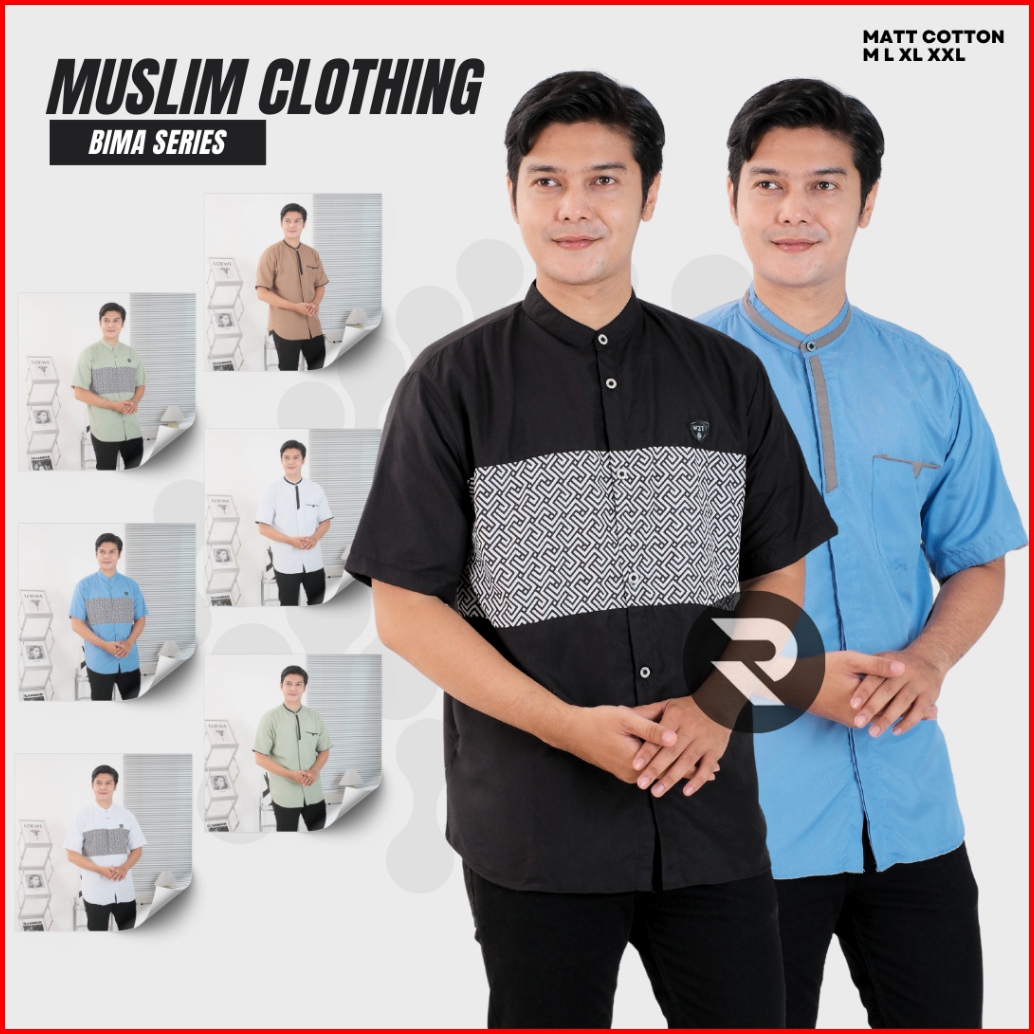 Rifina Baju Koko Muslim Pria Abizar Abimor Bahan Katun Premium Polos Lengan Pendek Warna Hitam