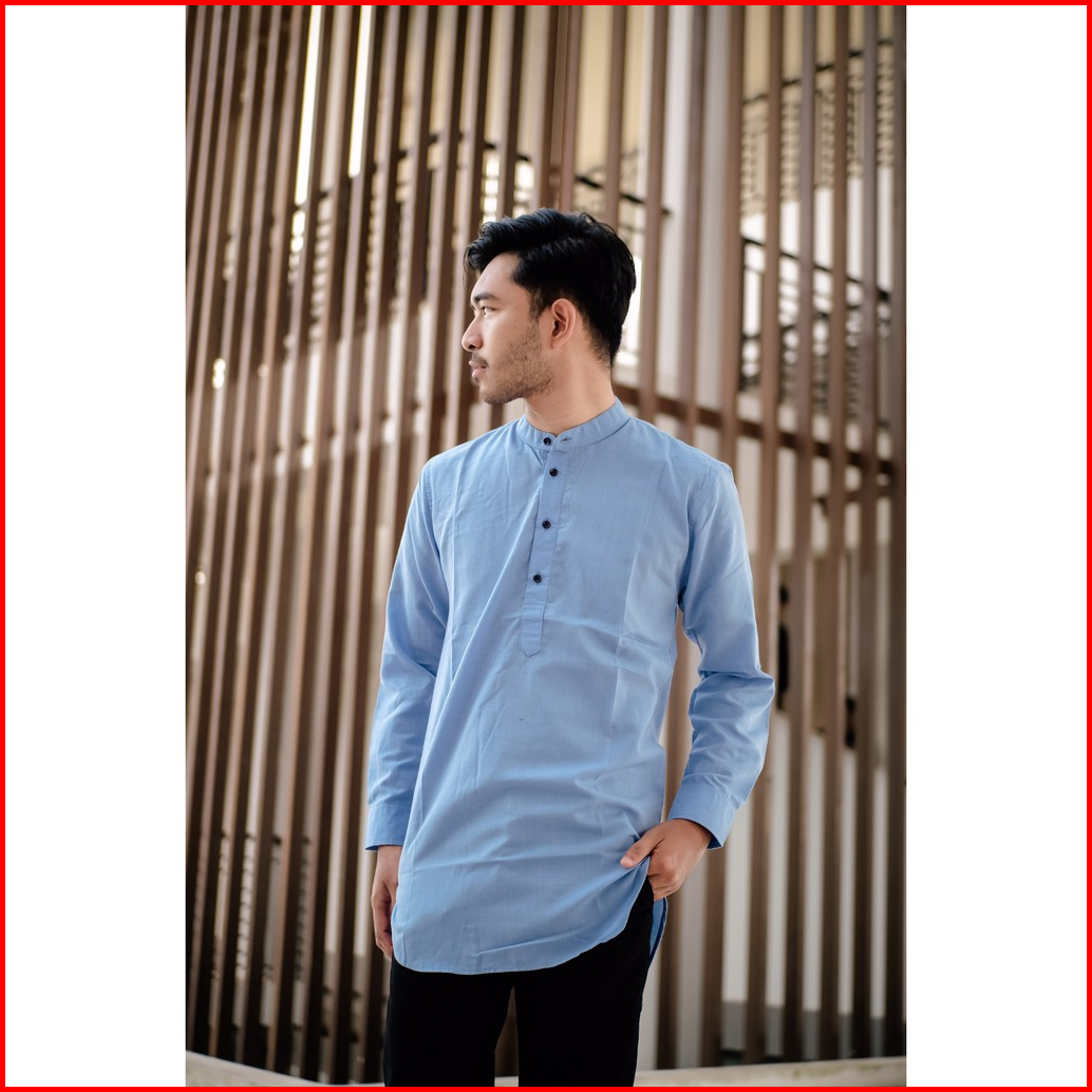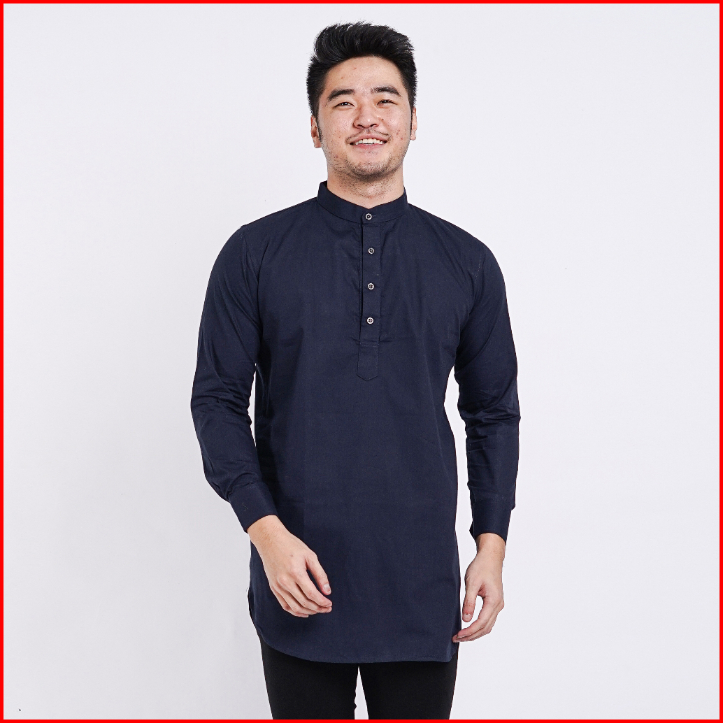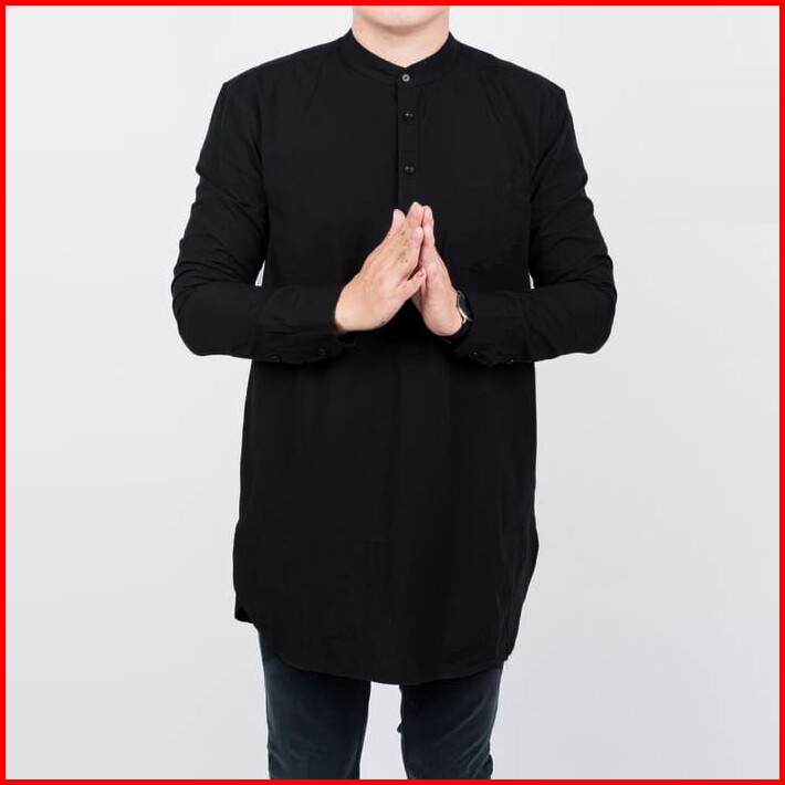 Baju Koko Kurta Pria Cowok Lengan Panjang Hitam Black Polos Ada Big Size Jumbo