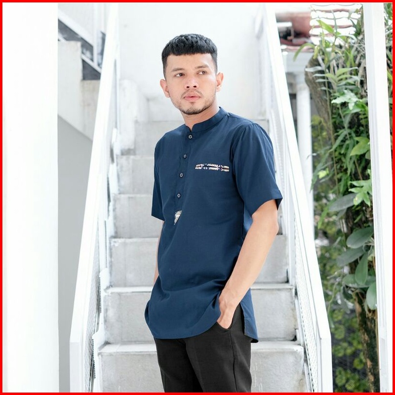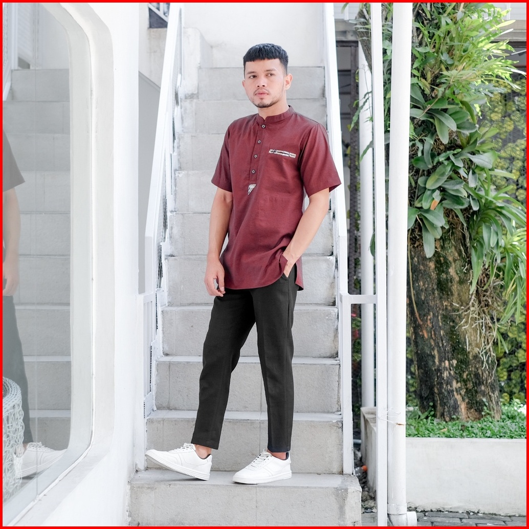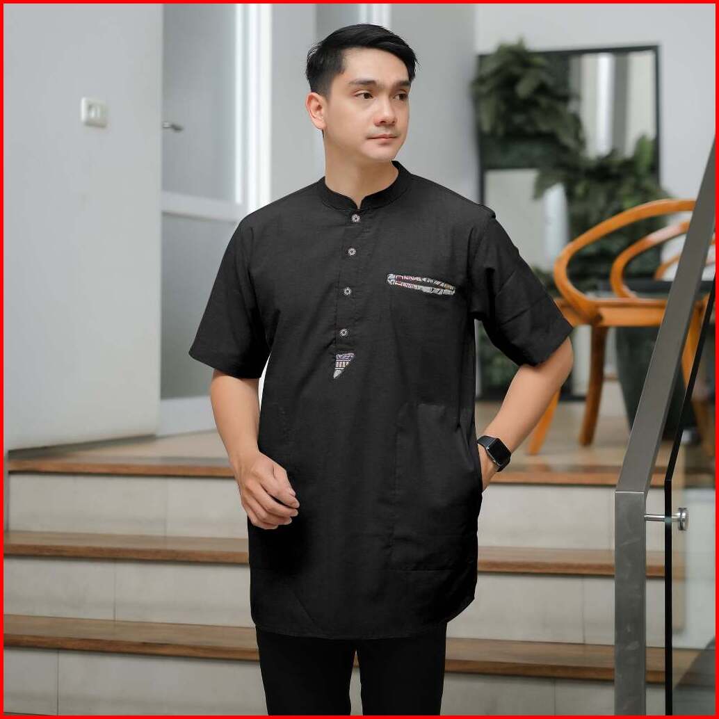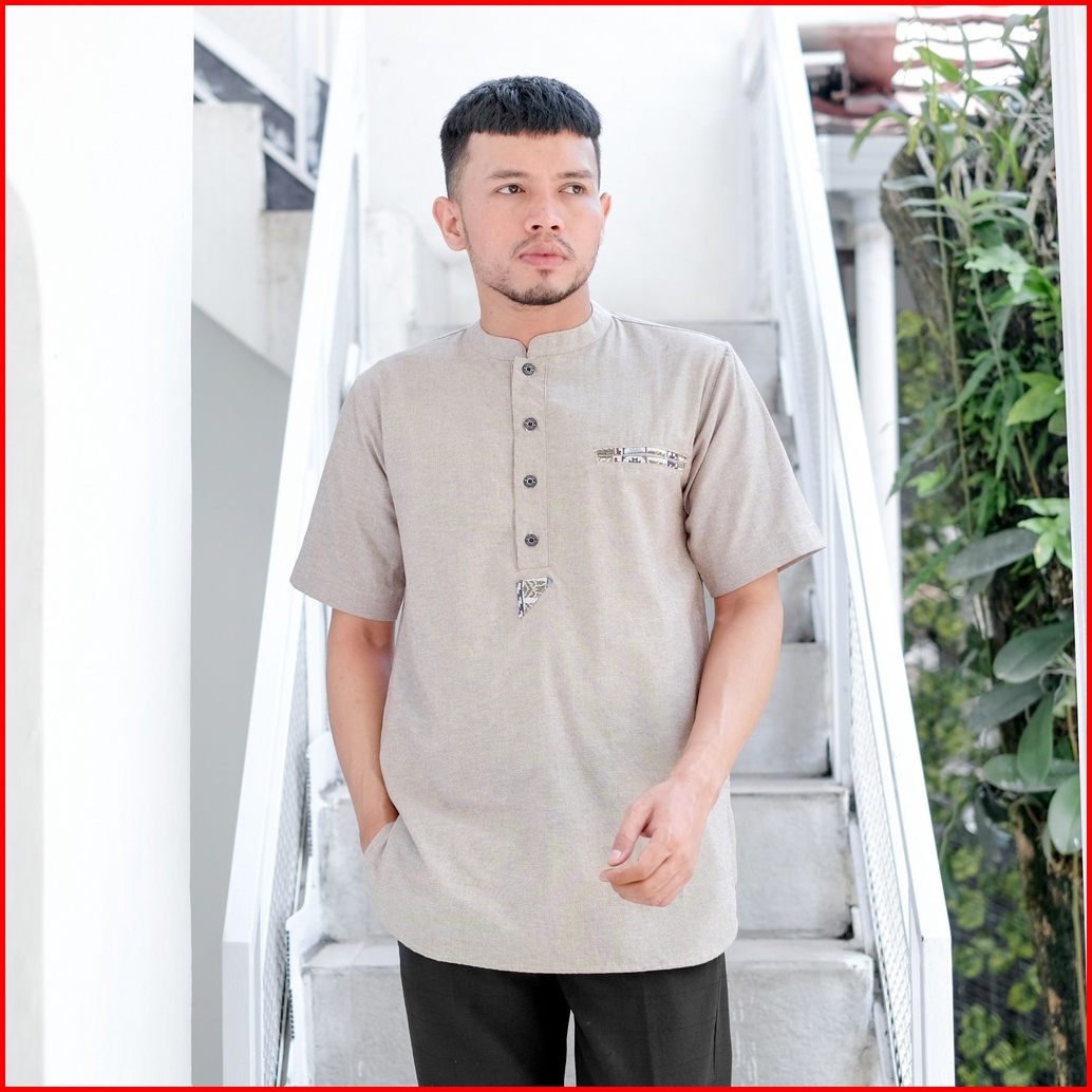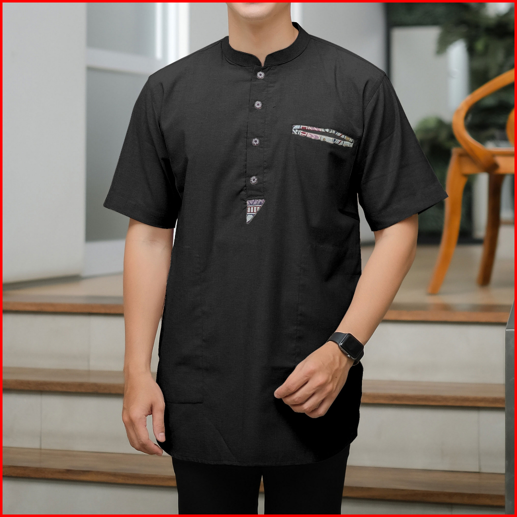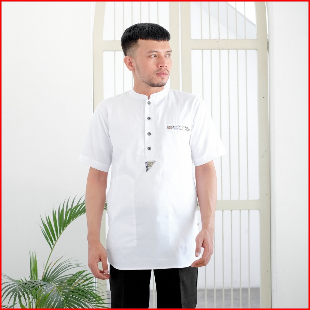Baju Koko Kurta Dewasa Lengan Pendek Bahan Oxford Premium Adem Serap Keringat Motif Saku Songket