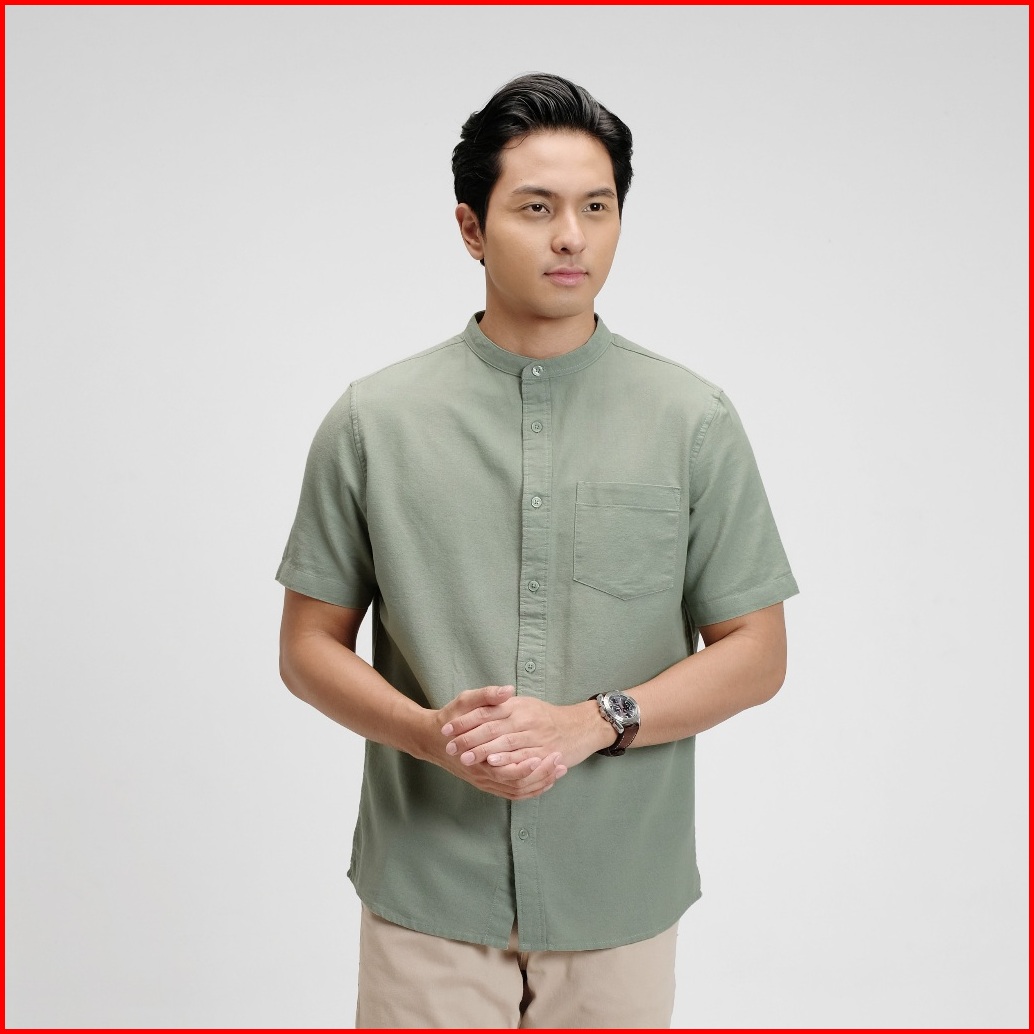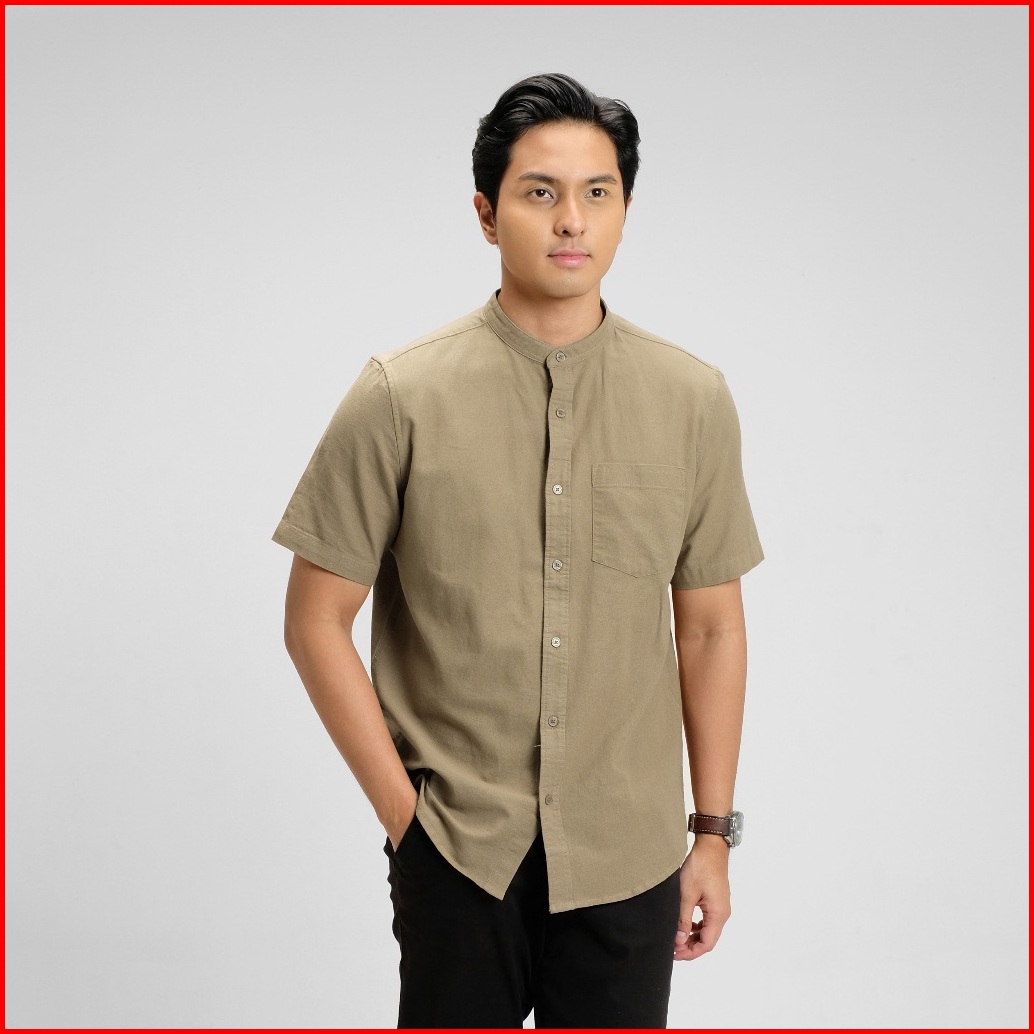 Cutoff Hamzah Kemeja Koko Rami Basic Polos Pria Pendek New Colors