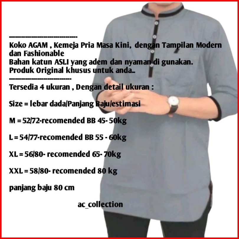 Baju Koko Dewasa Baju Koko Kurta Agam Lengan 3 4 Bahan Katun