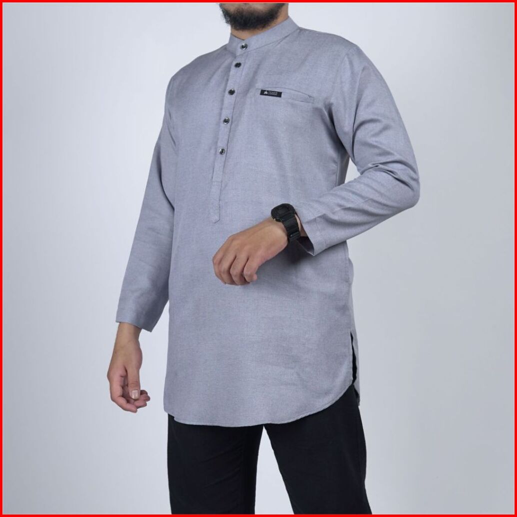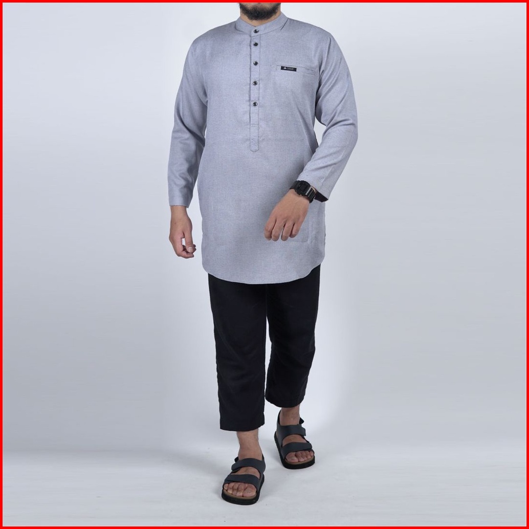 Khoirummah Kurta Makkah Dewasa - Baju Muslim Pria Dewasa Polos Lengan Panjang - Light Grey