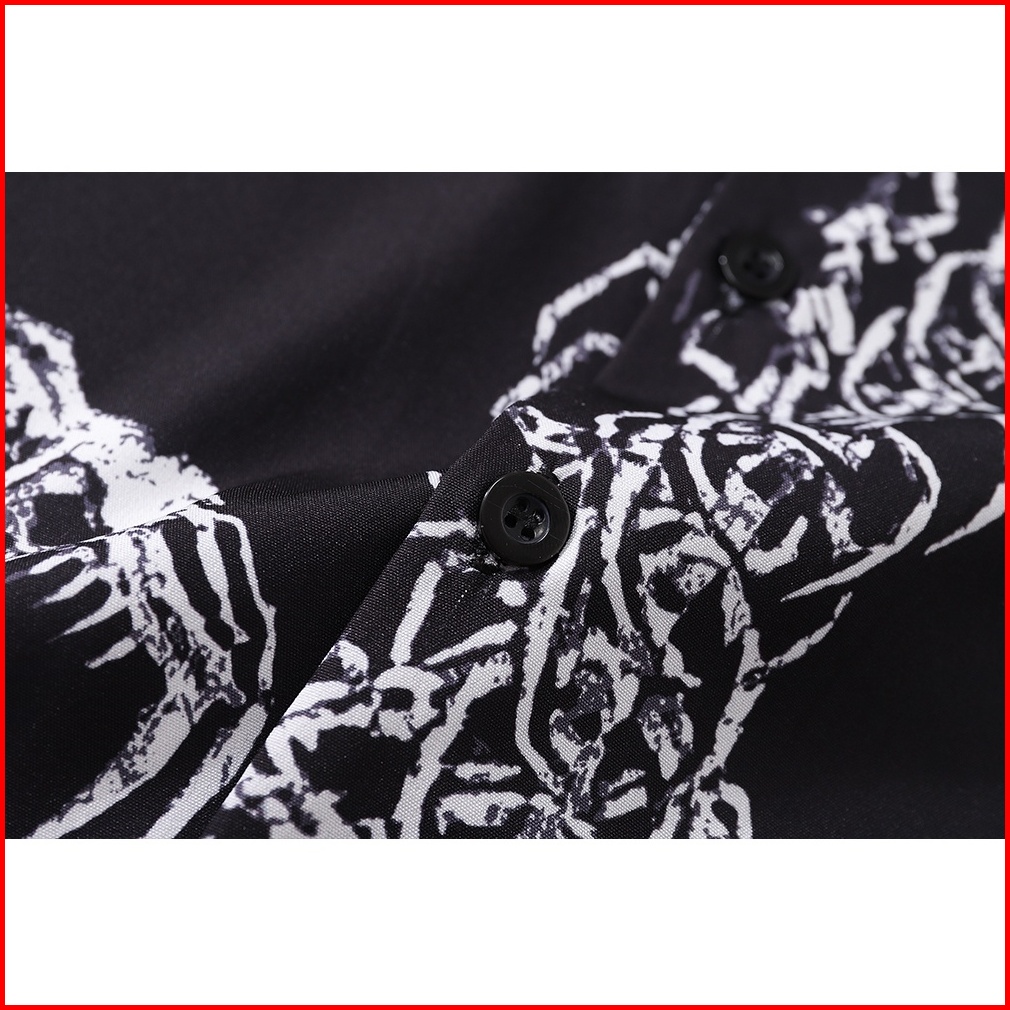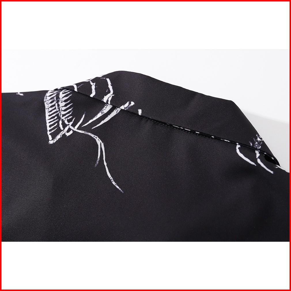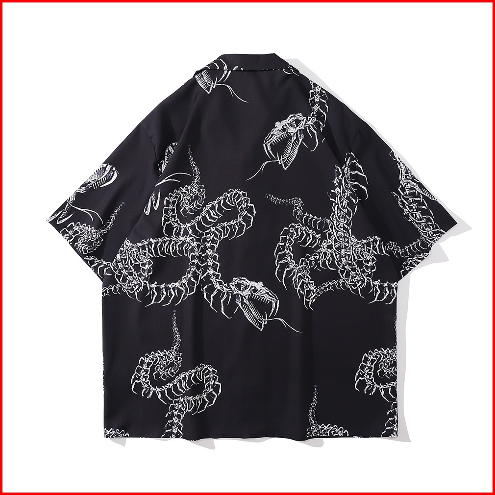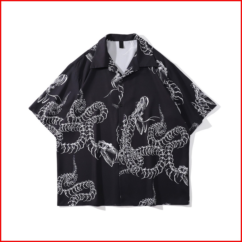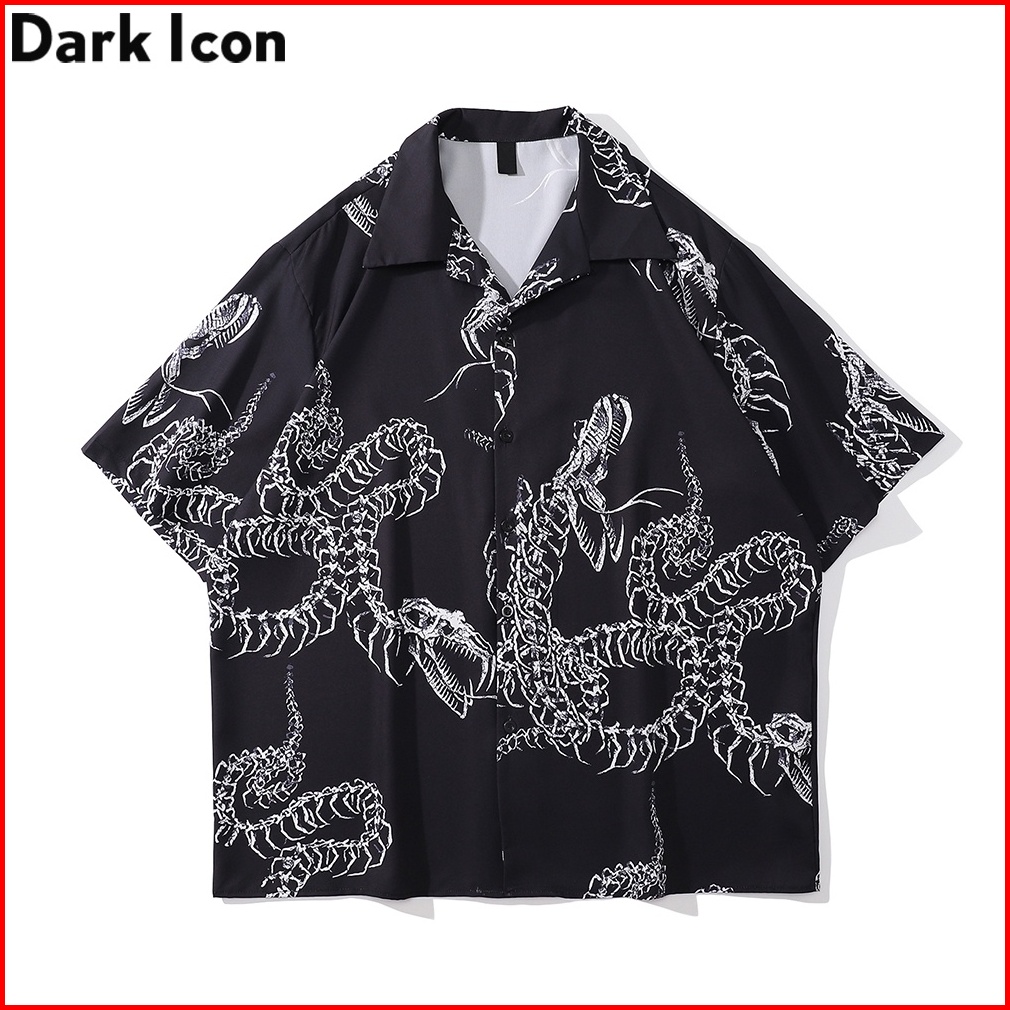 Dark Icon Skeleton Dragon Kemeja Laki-laki Summer Print Vintage Kemeja Motif Pria Lengan Pendek