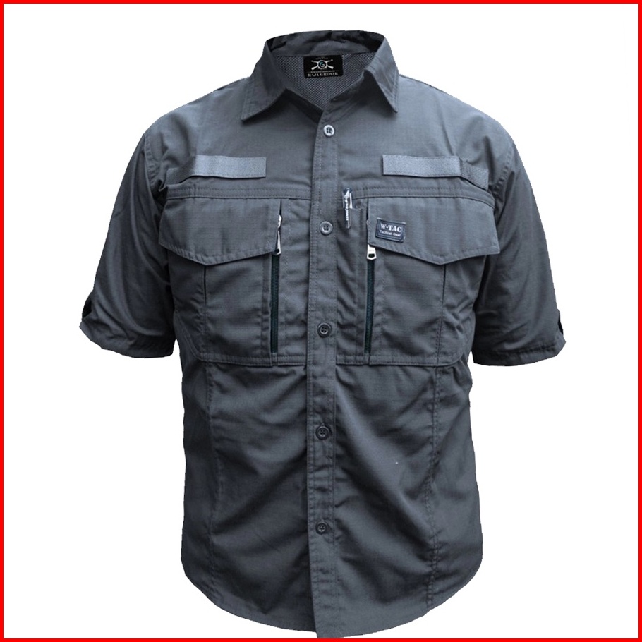 Custom Bordir Kemeja W-tac Tangan Pendek Pria Terbaru Kemeja Tactical Lapangan Bahan Ripstop Kemeja Taktikal Outdoor Kua