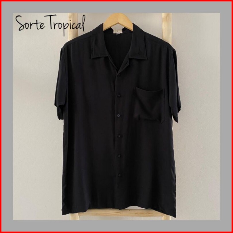Sorte Tropical - Baju Kemeja Pantai Hawai Kasual Unisex Rayon Polos Hitam