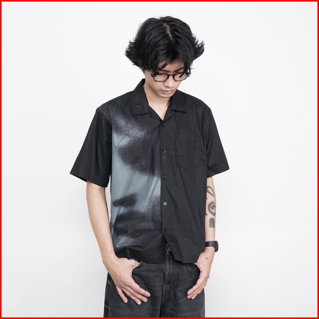 Verticalgoods Kemeja Pendek Shirt Black Kemeja Blurry