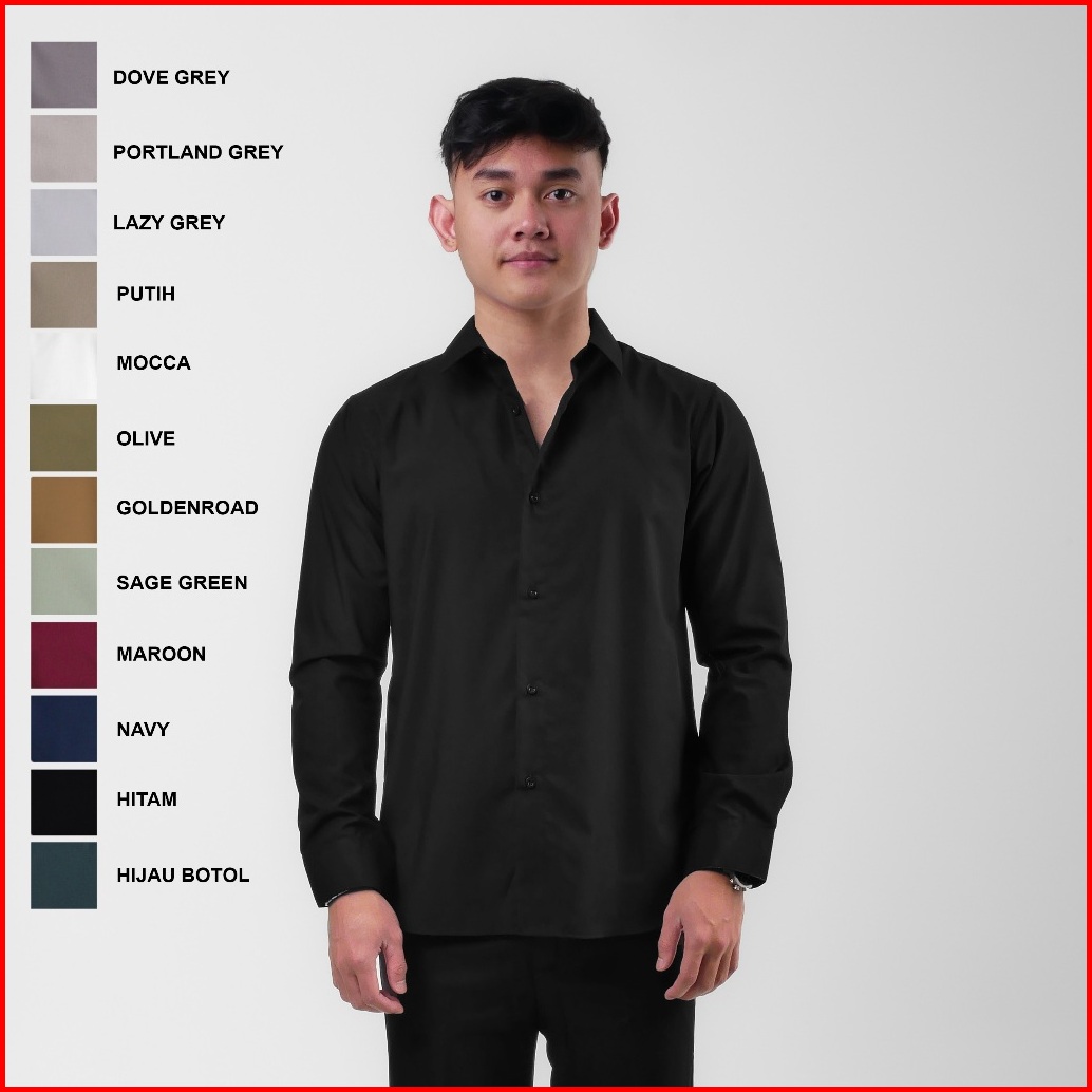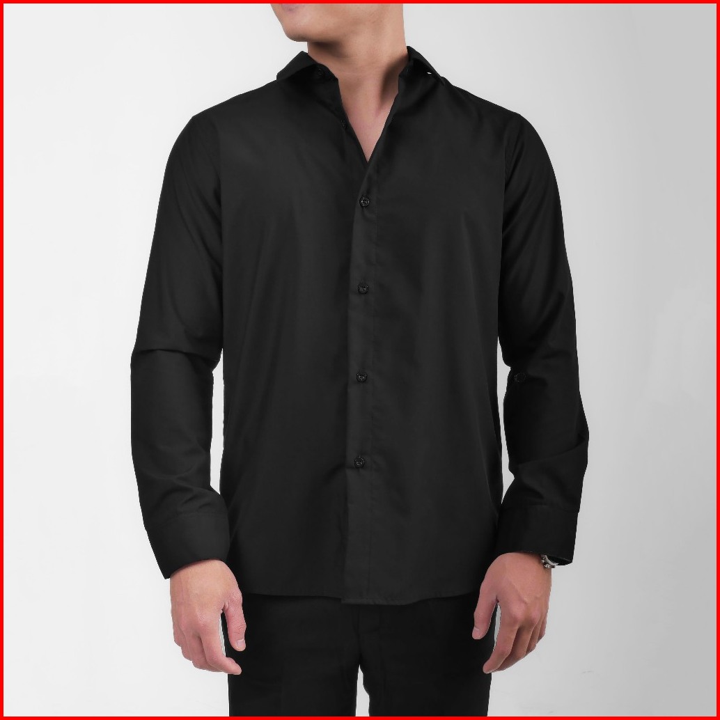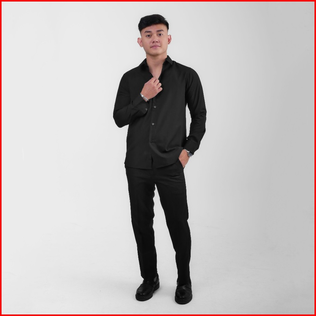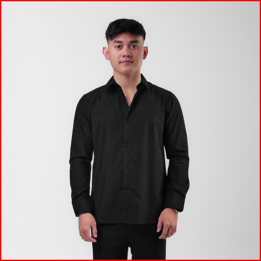 Heyplain Kemeja Hitam Lengan Panjang Slimfit - Kemeja Pria Lengan Panjang