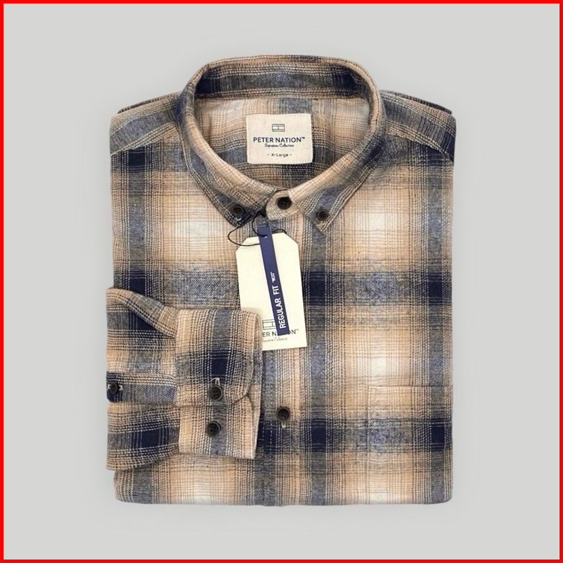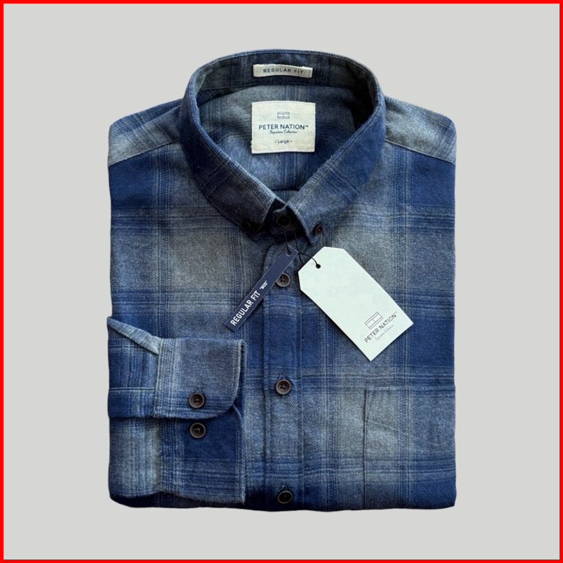 Peternation Kemeja Flanel Pria Wool Basic Panjang Regular Fit F418