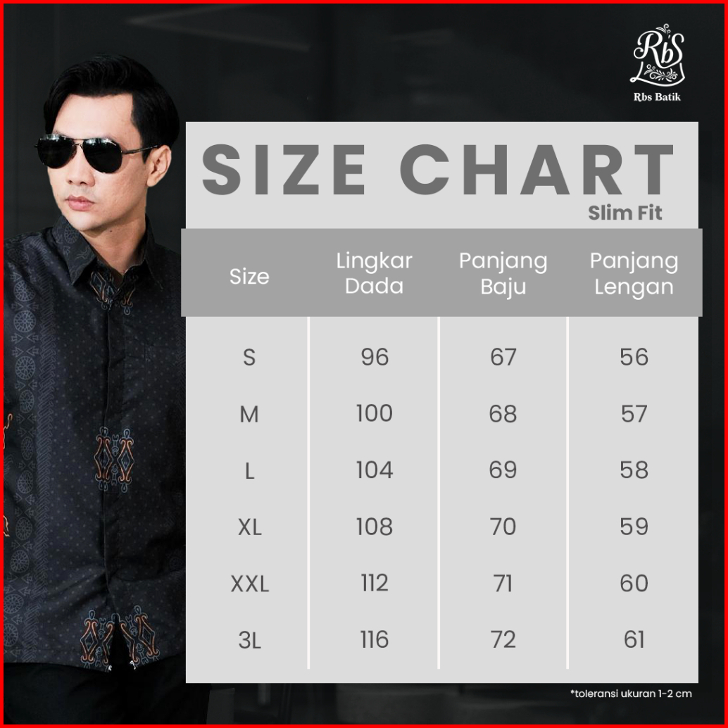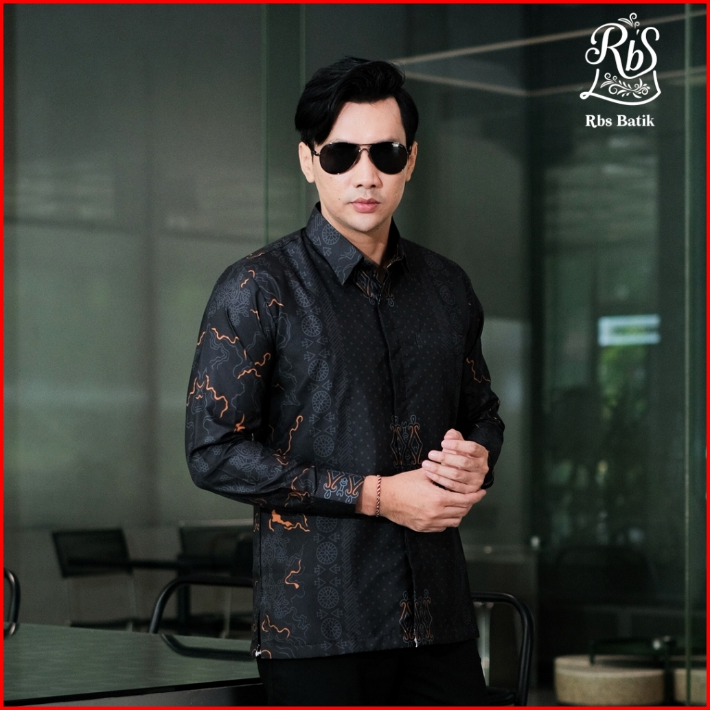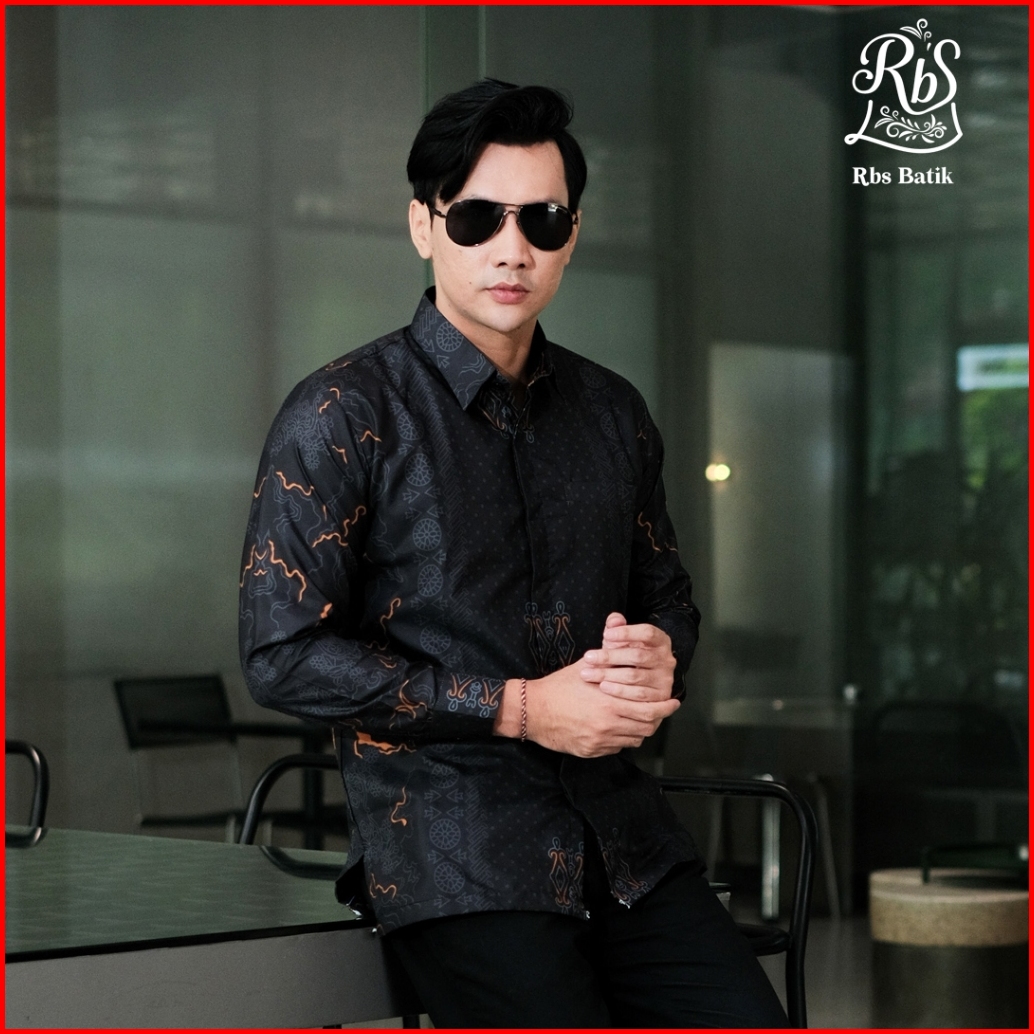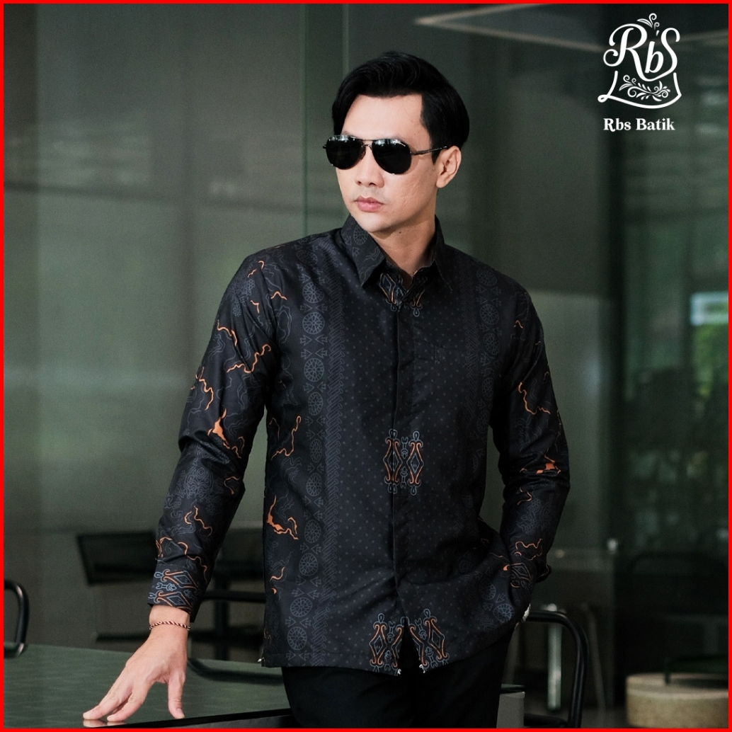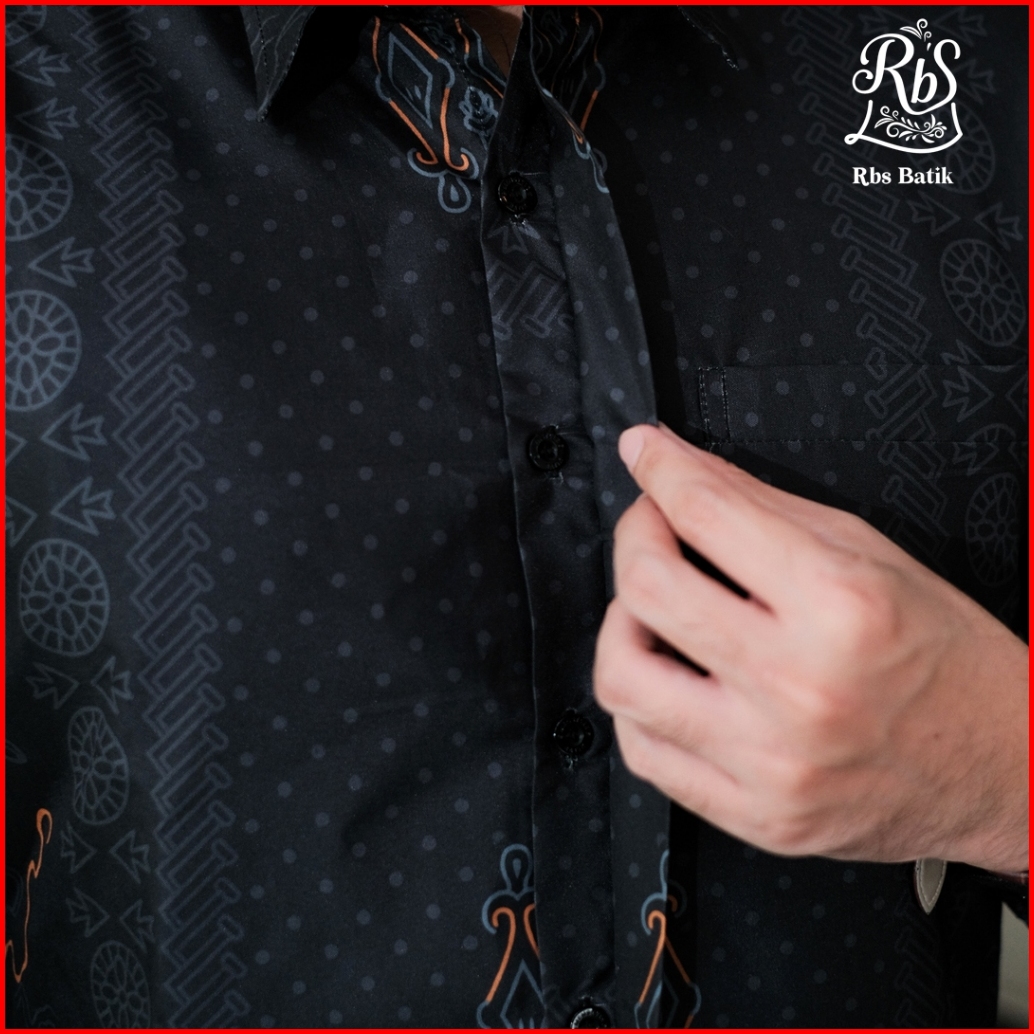 Rbs Batik - Kemeja Batik Pria Slimfit Hitam Widura Lengan Panjang Lapis Furing Batik Modern Slimfit Kondangan Kantor