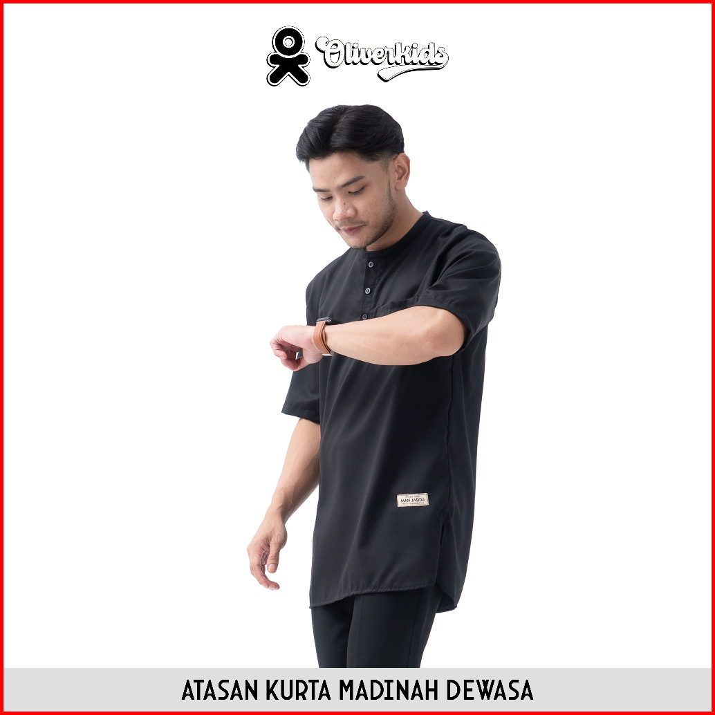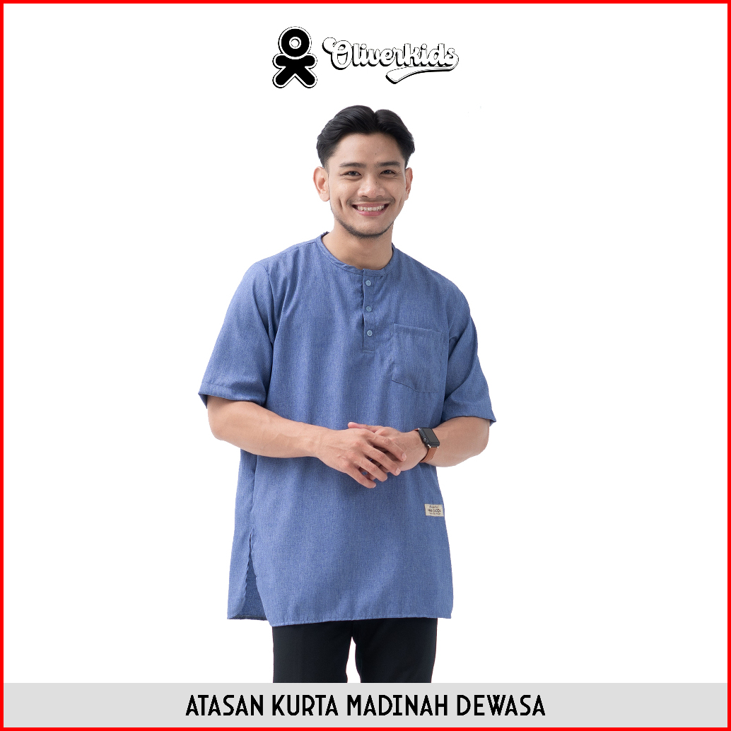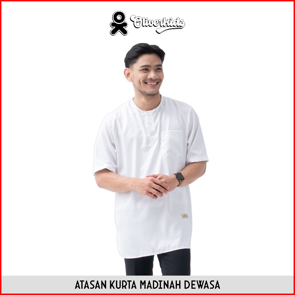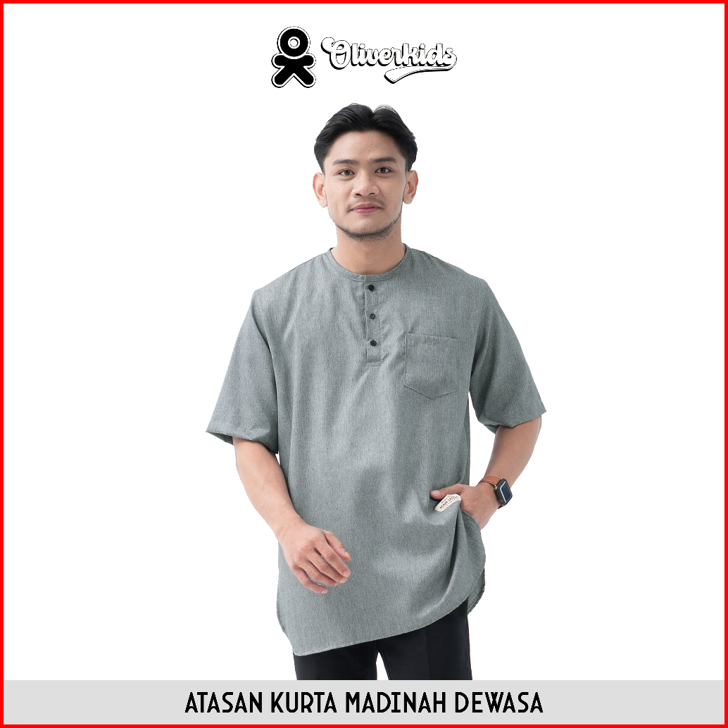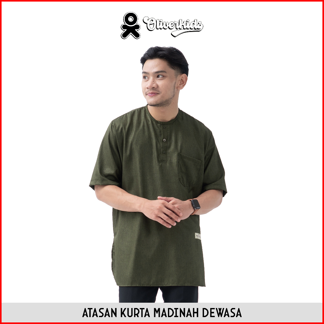 Oliverkids - Baju Koko Pria Dewasa Atasan Kemko Kurta Madinah Dewasa Bahan Katun Baju Umroh Shalat