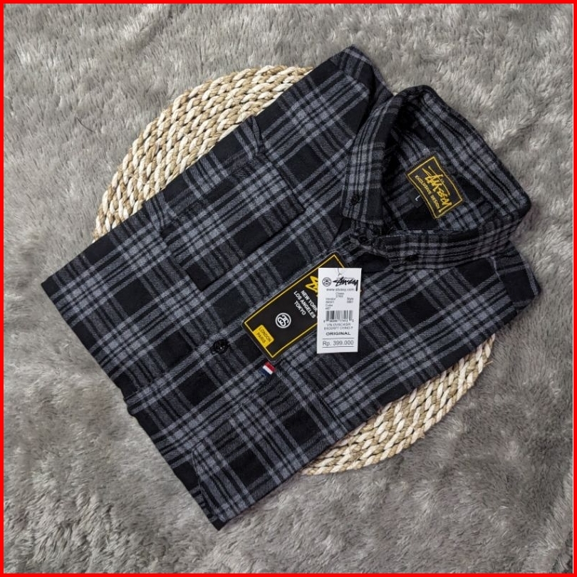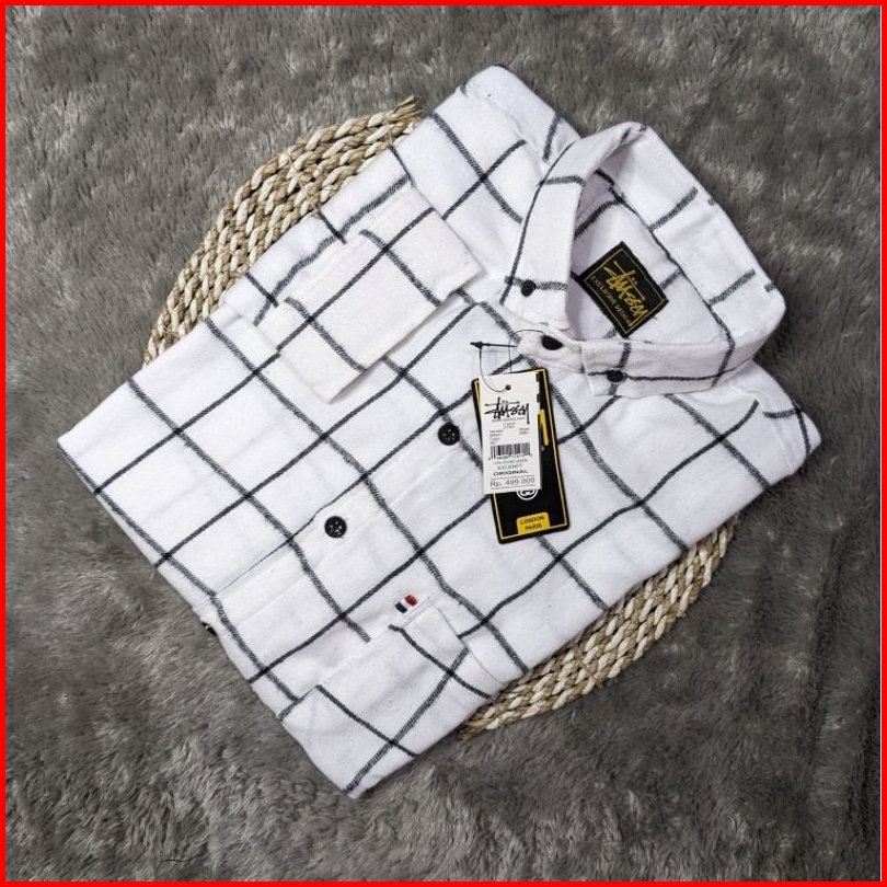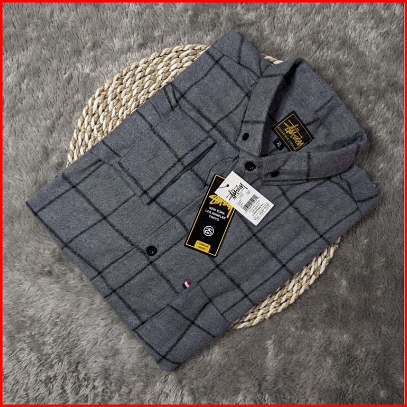 Kemeja Flanel Tartan Pria Import Lengan Panjang Motif Kotak Catur Abu Unisex Kemeja Flanel Kasual Lengan Panjang Distro