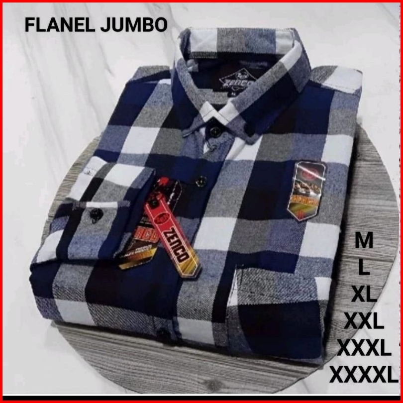 Kemeja Flanel 3 Dimensi Navy Oversize Jumbo M-l-xl-xxl-xxxl-xxxxl Lengan Panjang