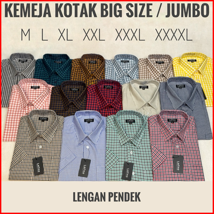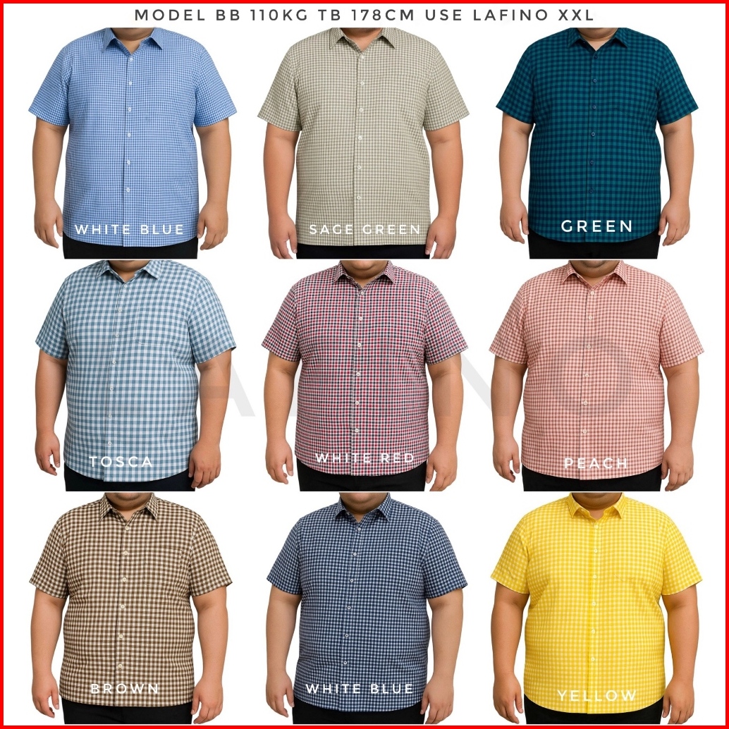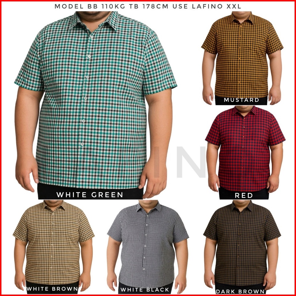 Lafino M L Xl 2xl 3xl 4xl Xxl Xxxl Xxxxl Hem Kemeja Motif Kotak Jumbo Pria Lengan Pendek Big Size
