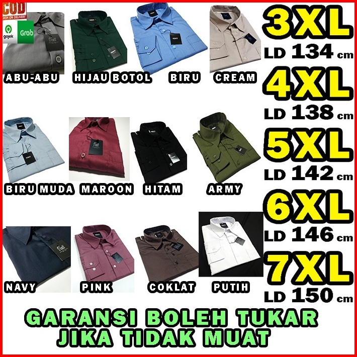 Kemeja Hem Baju Polos Atasan Pria Cowok Laki Laki Jumbo Big Size Oversize Regular Reguler Premium Fashion Kasual Casual