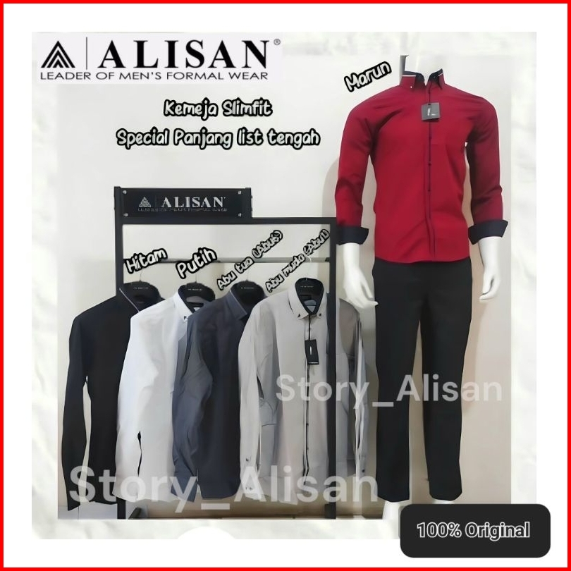 Kemeja Alisan Polos Spesial Slimfit Lengan Panjang Seragam S - 4xl Jumbo 100 Ori