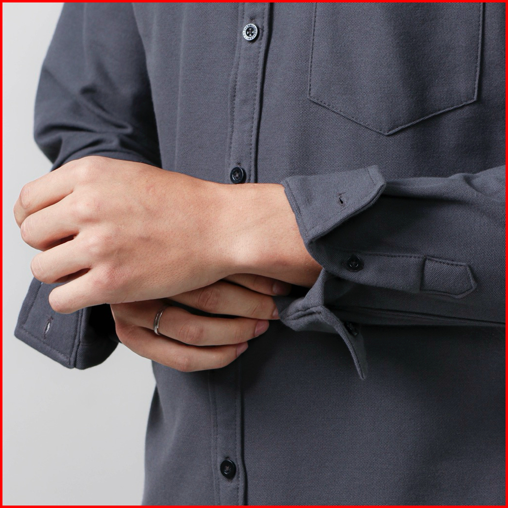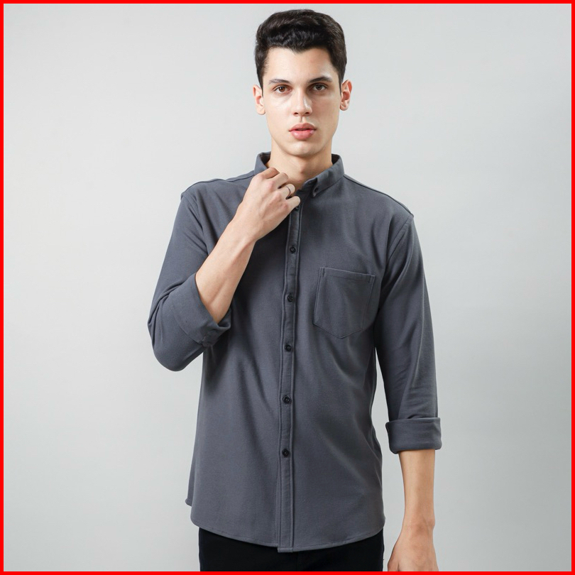 Kemeja Pria Lengan Panjang Abu-abu Tua Dark Gray Original Cotton Pique Best Quality