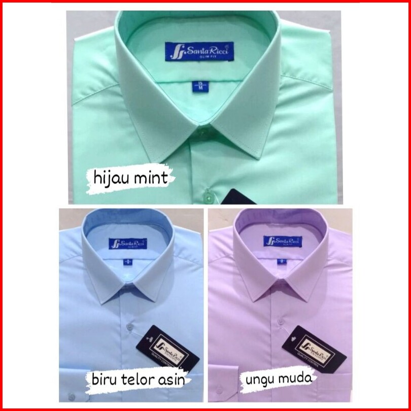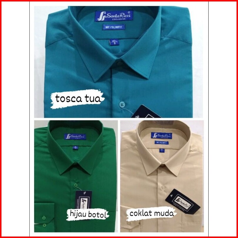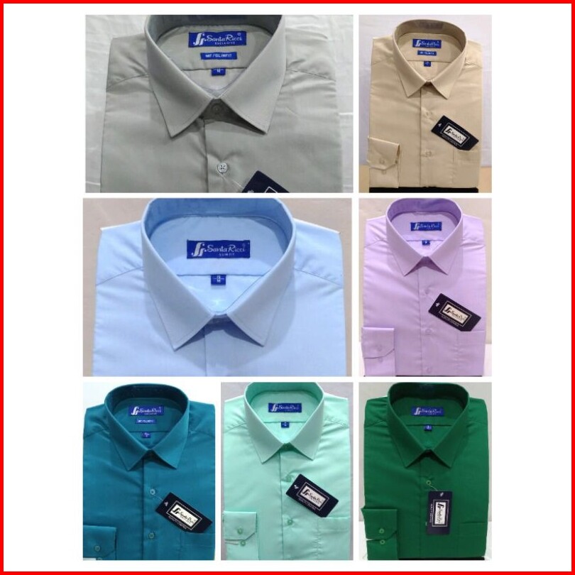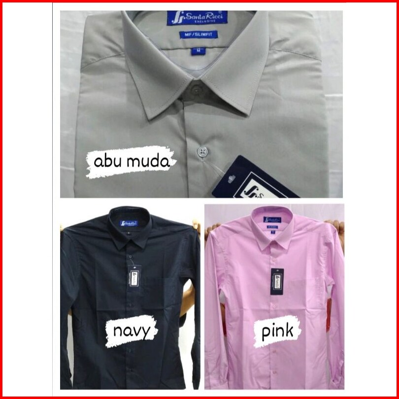 Santa Ricci Kemeja Pria Slim Fit Panjang Maroon Putih Hitam Biru Elektrik Abu Navy Coklat Pink