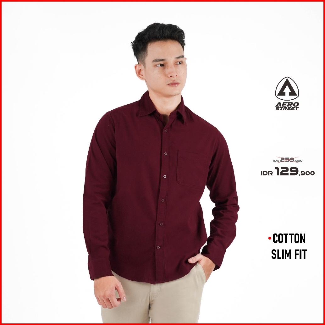 Aerostreet Kemeja Cotton Panjang Ravel Maroon Polos Gelap Qbaba