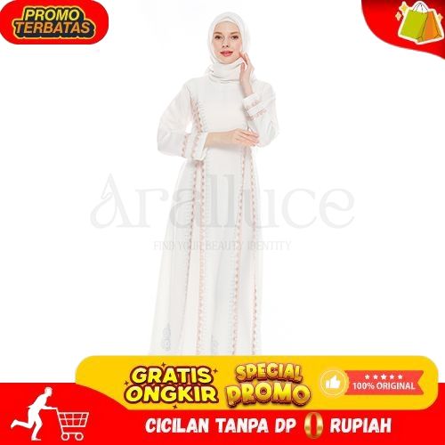 [Mall] ARALLUCE • Dress abaya putih turkey terbaru ARL 044 - Gamis putih wanita kekinian mewah dan elegan