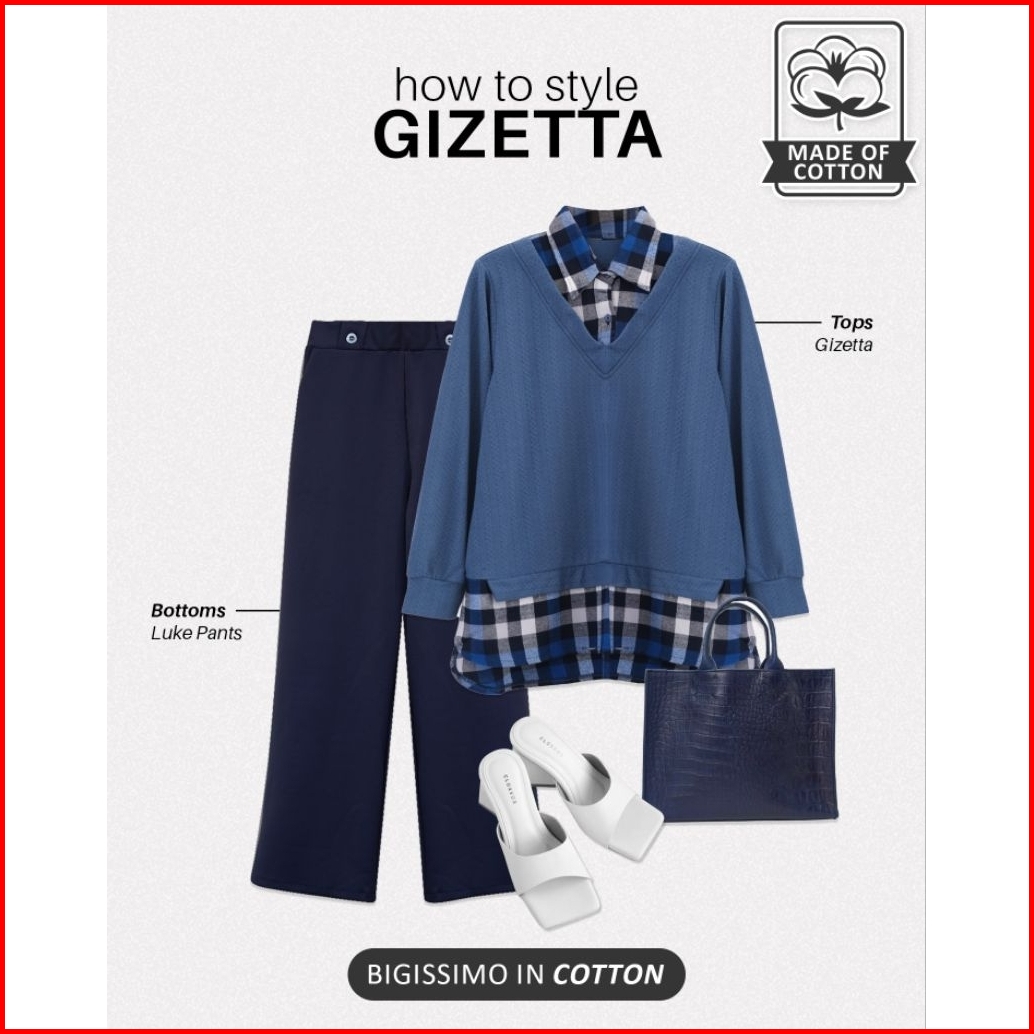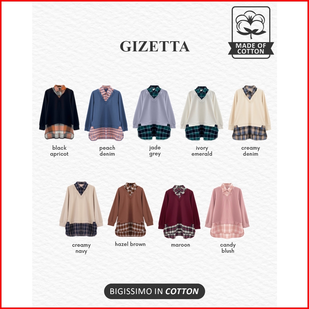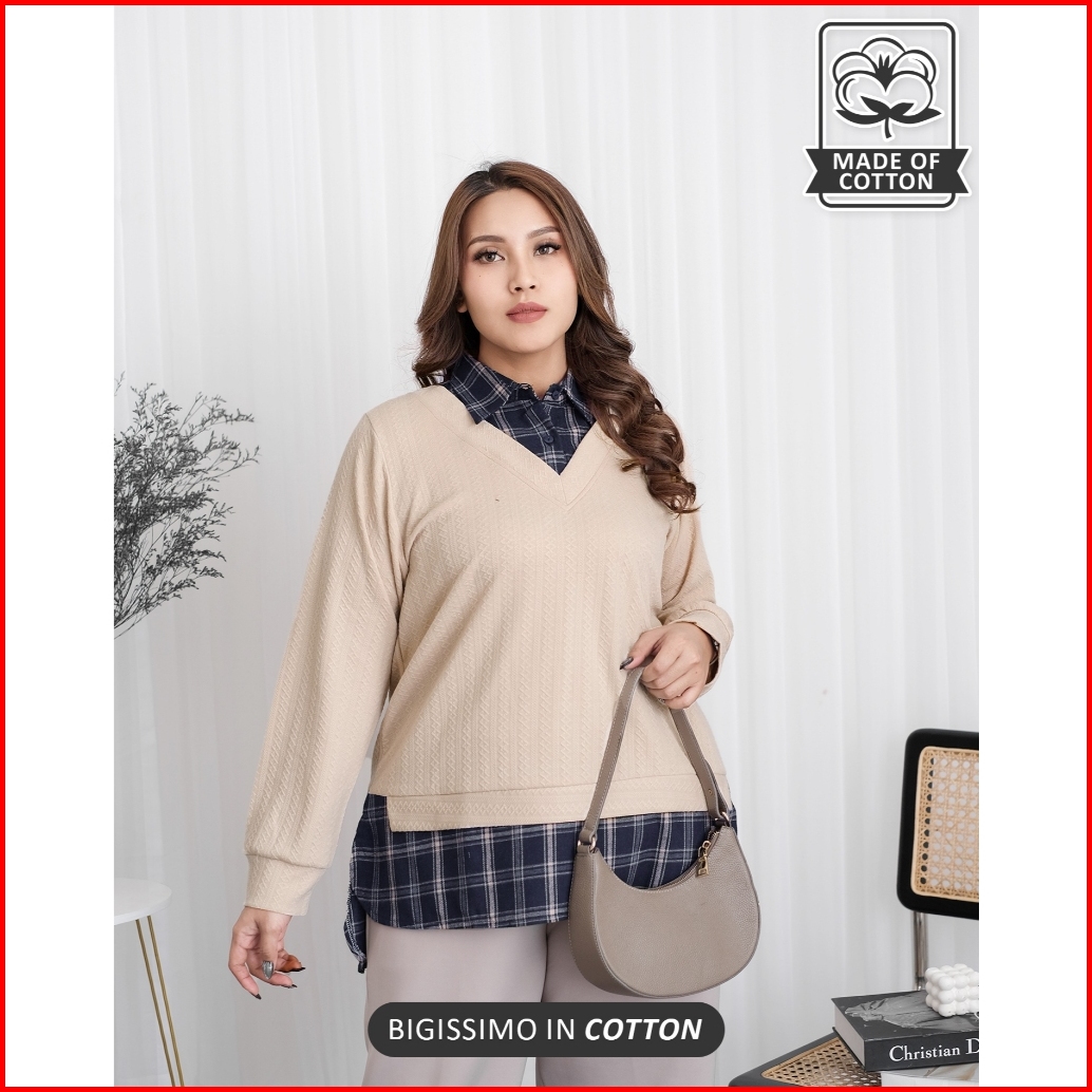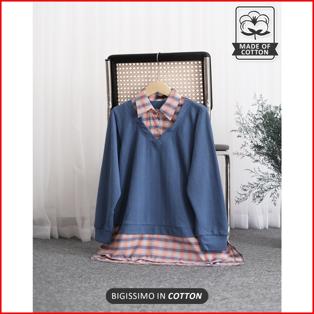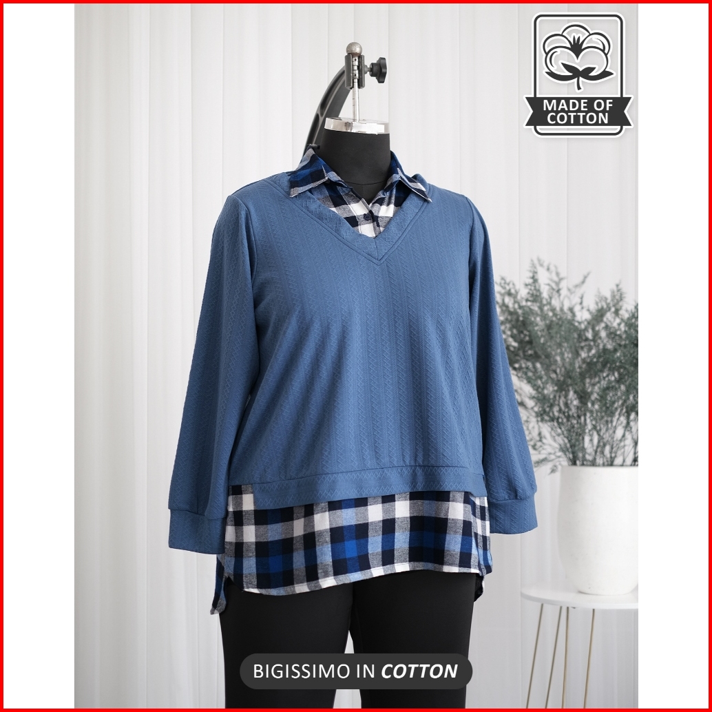 Bigissimo In Cotton - Gizetta Blouse Atasan Wanita Blouse Flanel Big Size Jumbo Ld 130