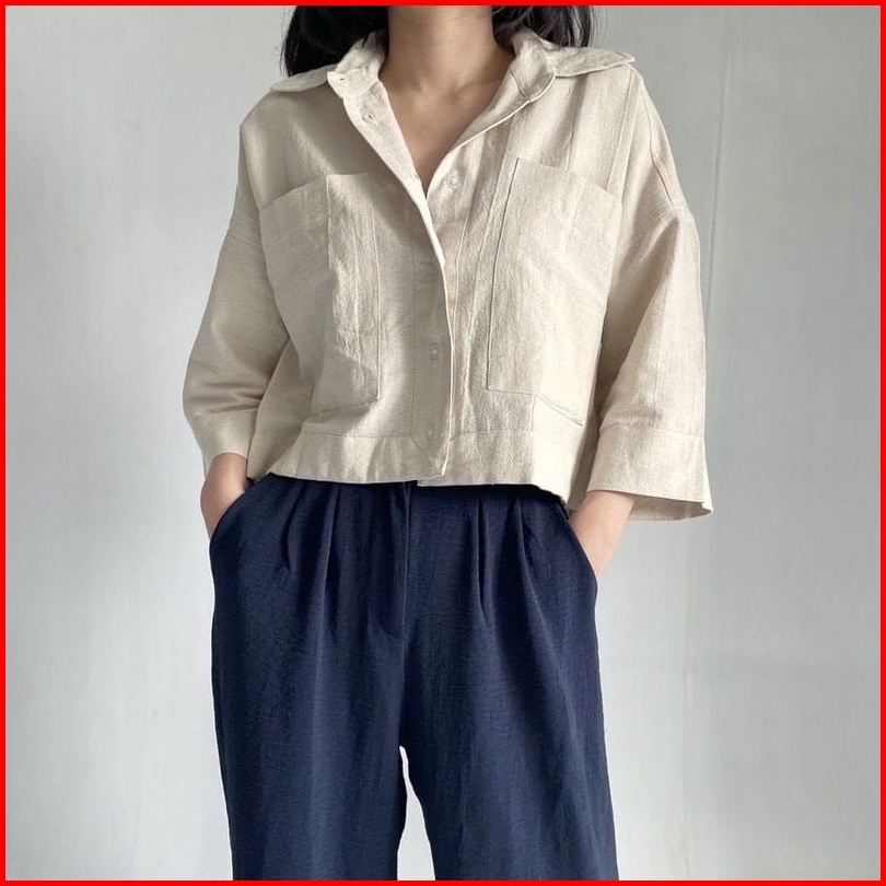 Kemeja Wanita Linen Croptop Shirt Outer Linen Atasan Wanita