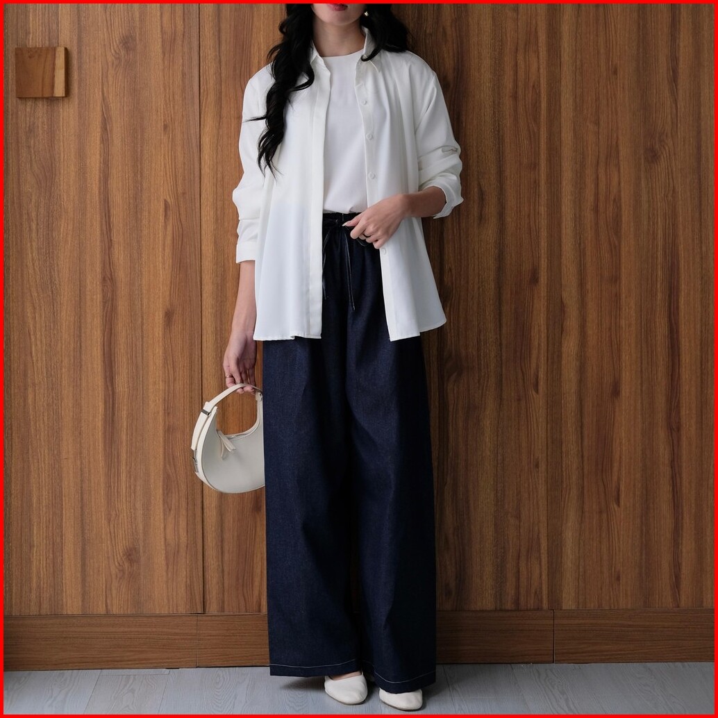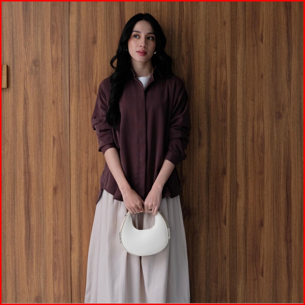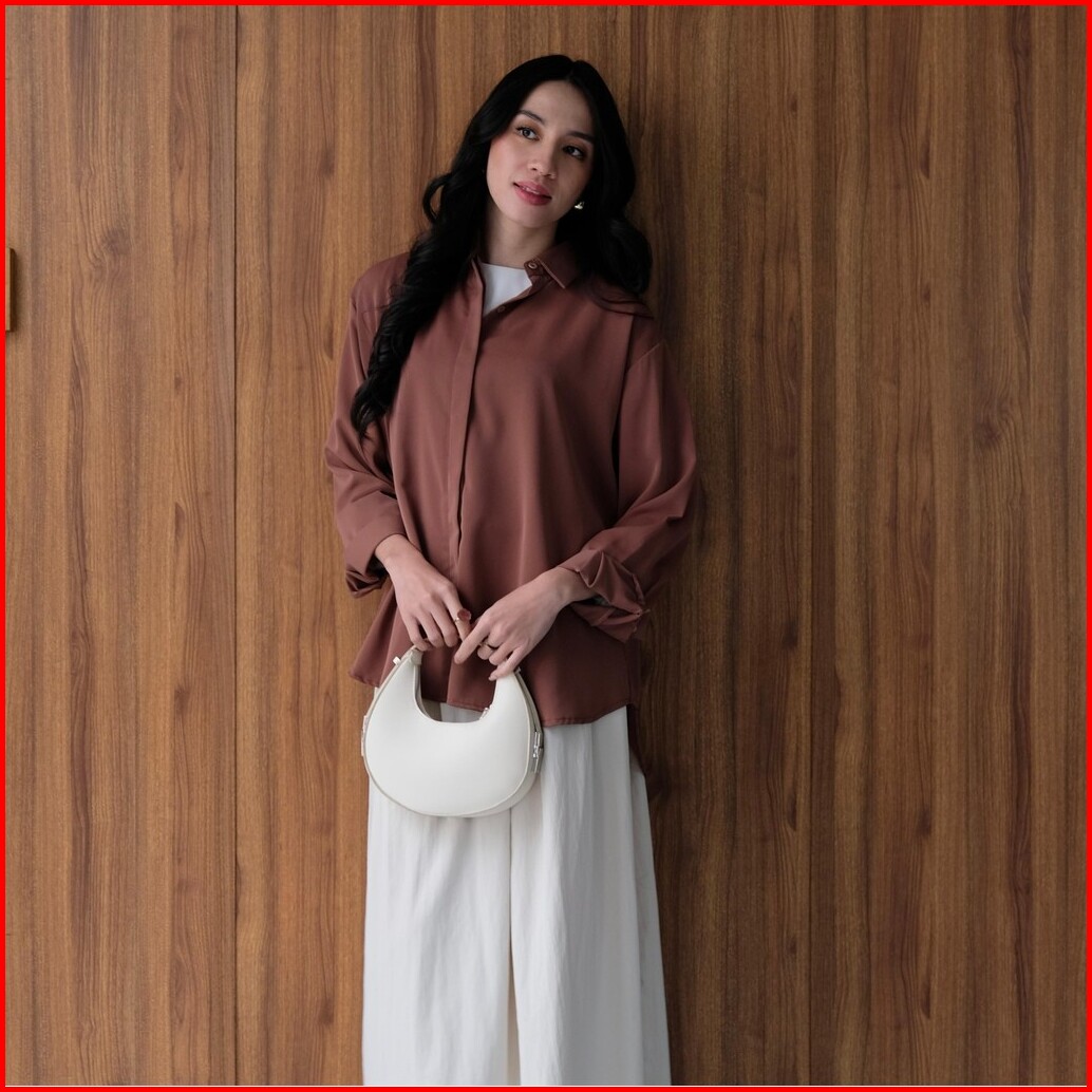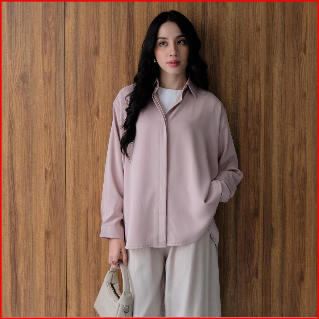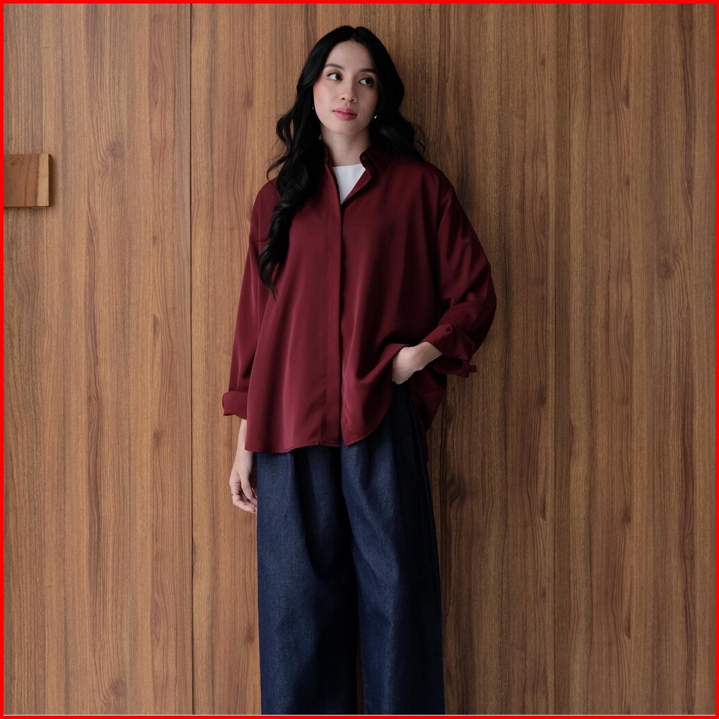 Flowing Shirt Plain Atkey - Kemeja Basic Oversized Wanita Lengan Panjang