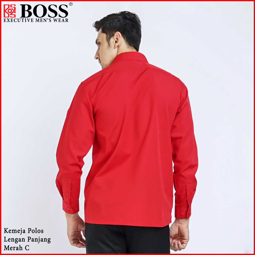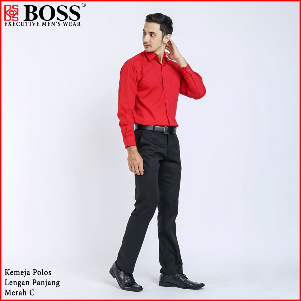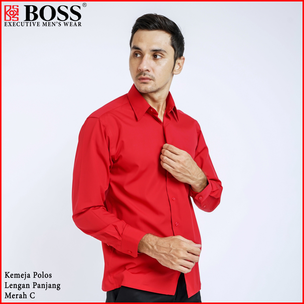 Boss - Kemeja Polos Pria Lengan Panjang Atasan Hem Kantor Cowok Regular Fit Merah Size 3xs - 4xl