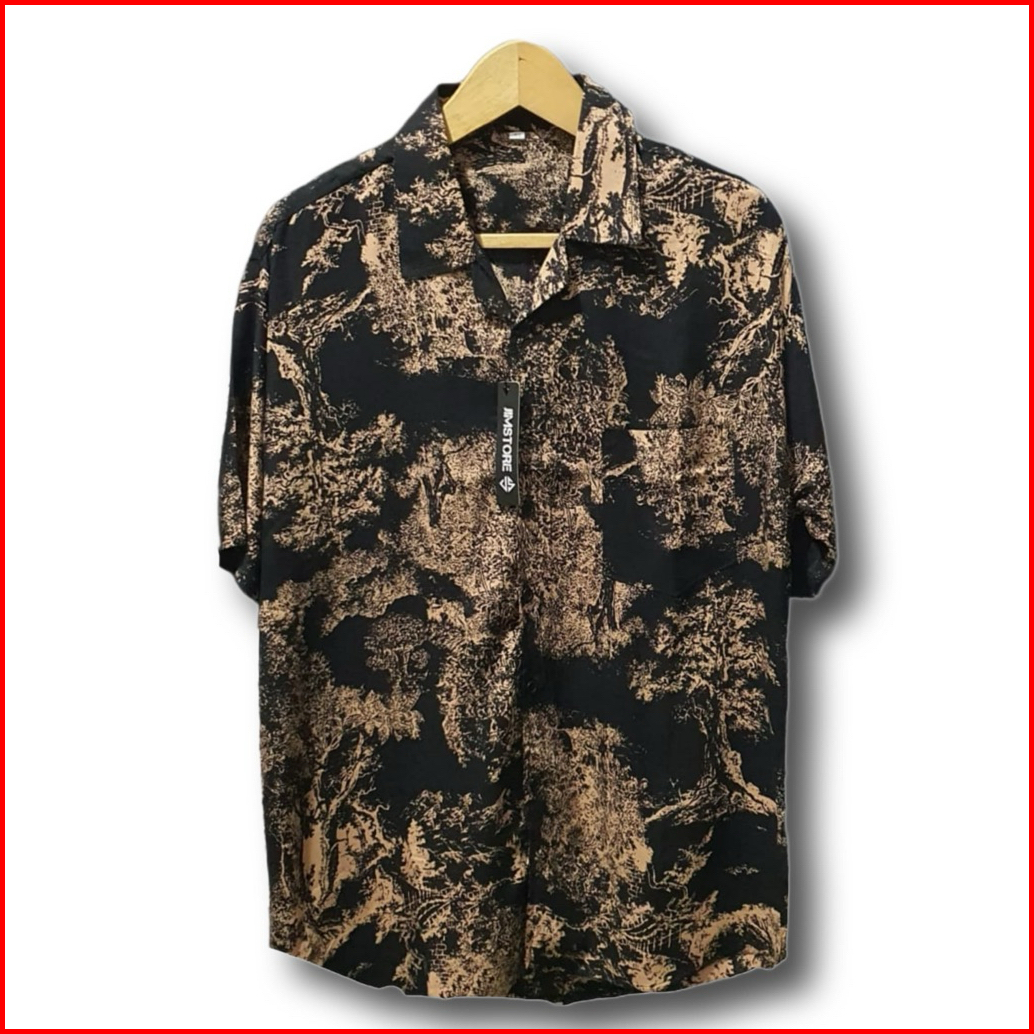 Kemeja Pria Hawai Kemeja Pantai Abstrak Vintage Casual Lengan Pendek Retro Bahan Rayon Viscose Import Adem