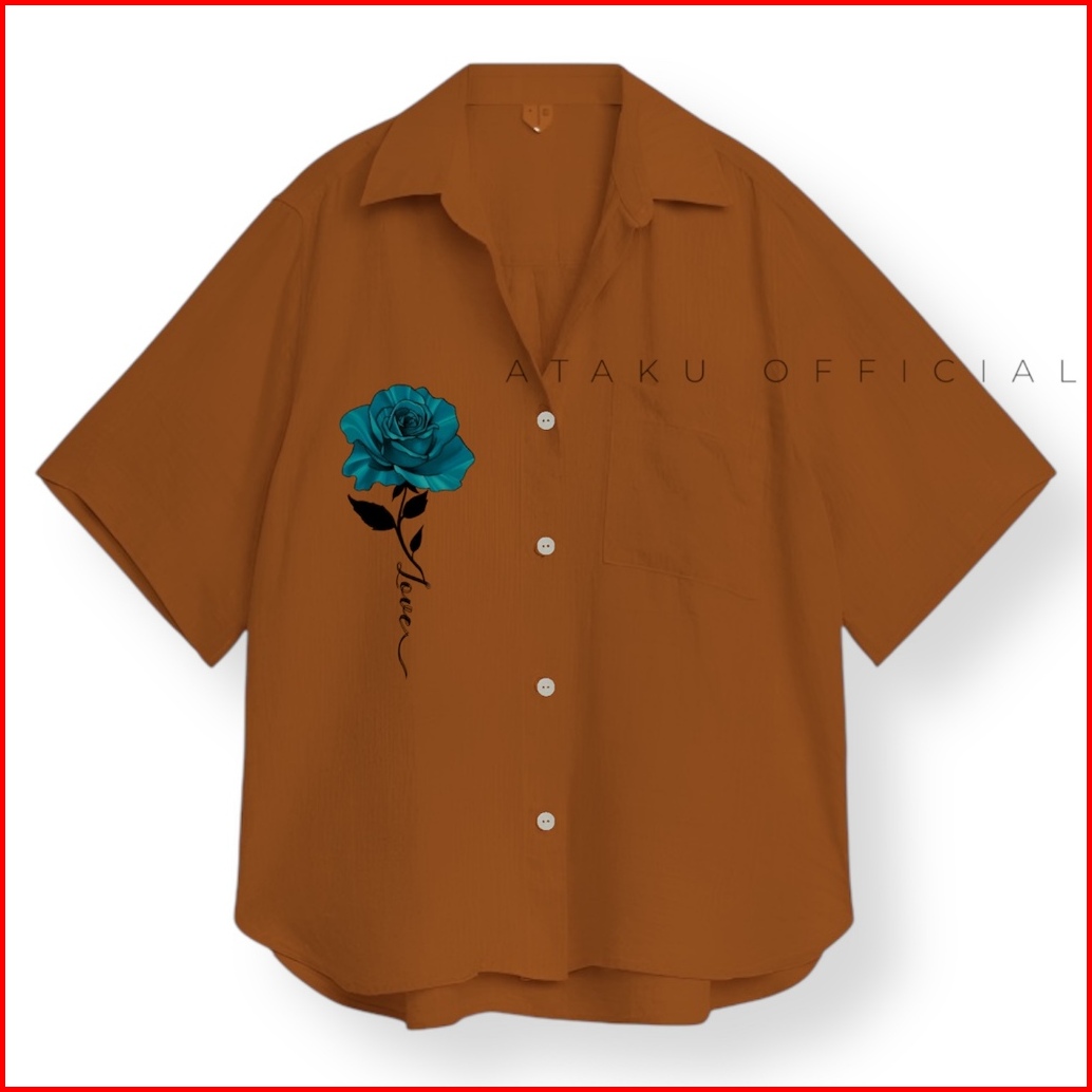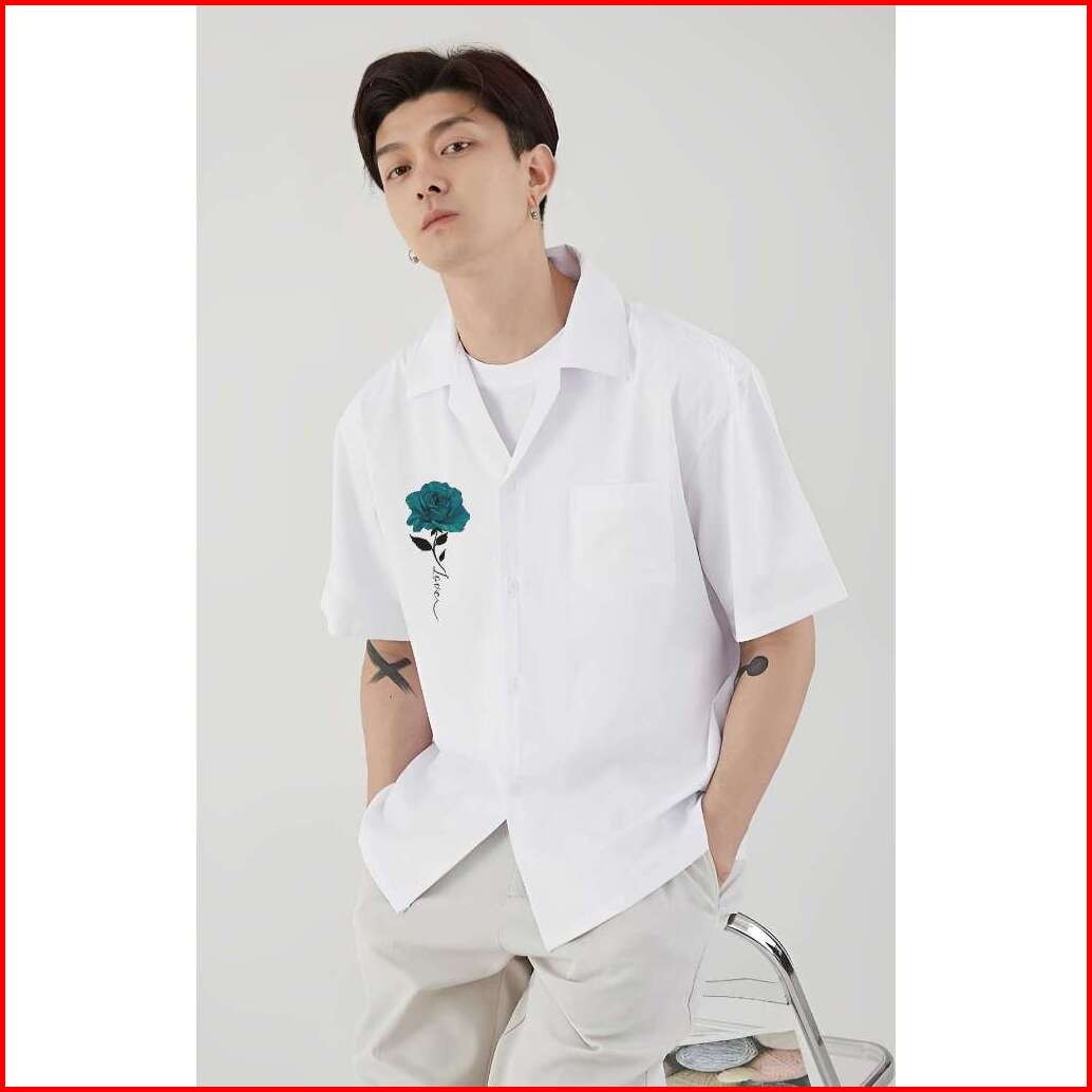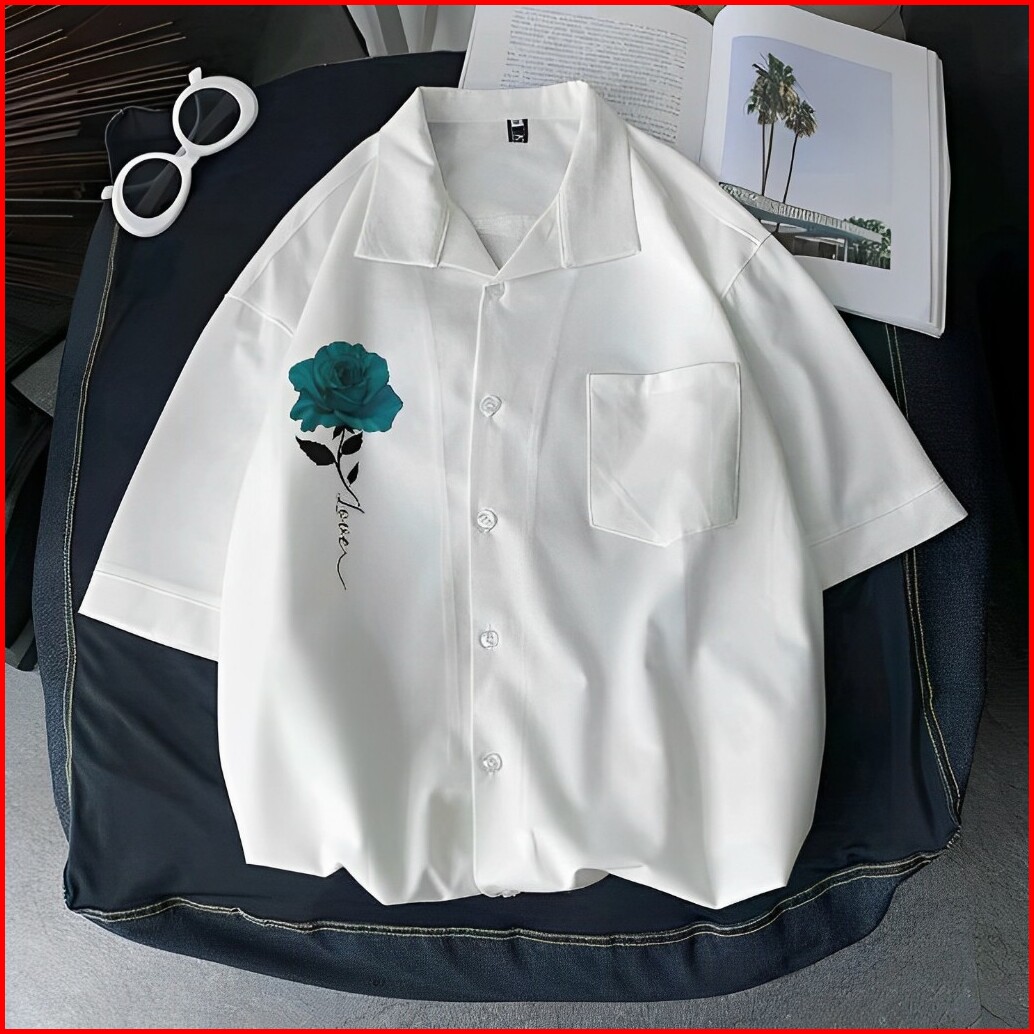 Kemeja Vintage Pria Lengan Pendek Kemeja Polos Pria Dengan Motif Blue Roses Korean Style Terbaru Kemeja Pria
