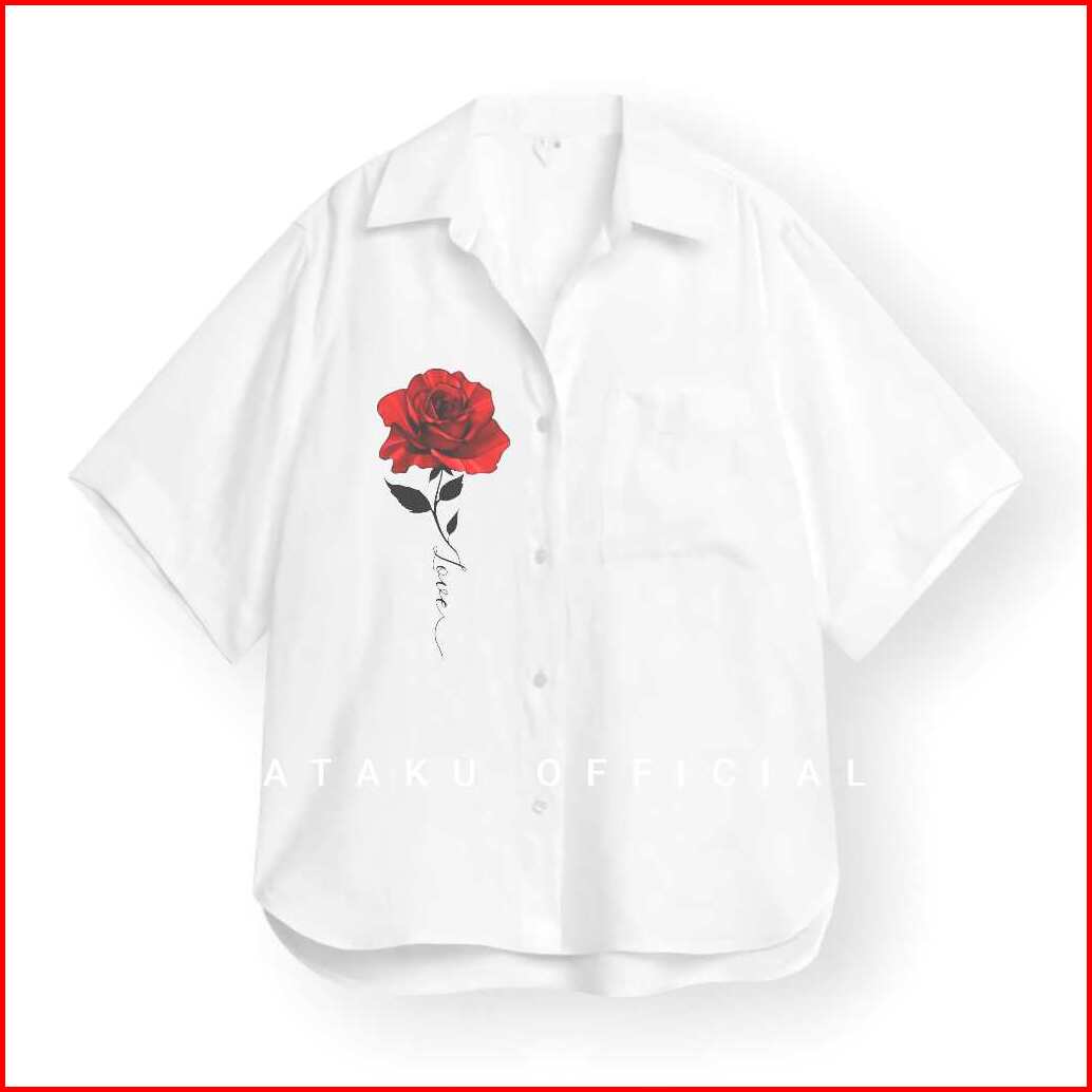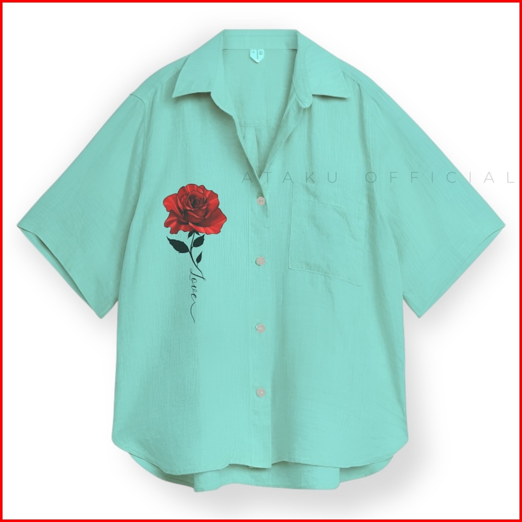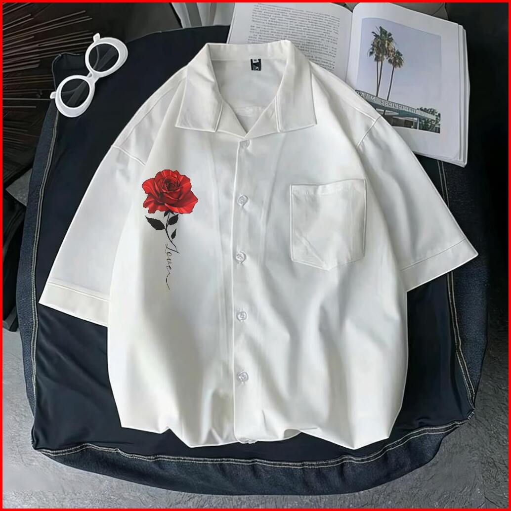 Kemeja Vintage Pria Lengan Pendek Kemeja Polos Pria Dengan Motif Blue Roses Korean Style Terbaru Kemeja Pria